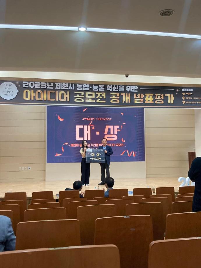 지난 5월 17일 제 1회 제천시 농촌협약지원센터에서 개최한 제천시 농업•농촌 혁신 아이디어 공모전에서 세명대학교 항공서비스학과 재학생들이 1,2,3위를 모두 수상하는 영광을 차지했습니다