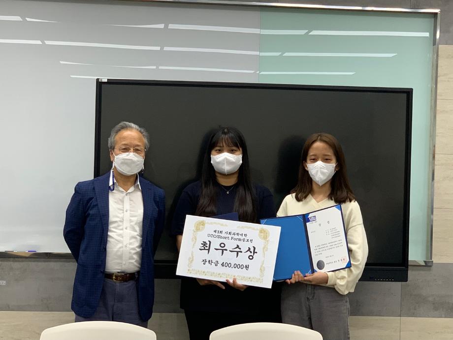 본문 시작 홈으로 매력적인 학과소개 매력적인 학과소개 흥미로운 교육과정 특별CC프로그램 We can 취업 따뜻한 커뮤니티 홈페이지가이드 지금 우리 광홍은 학과개요 학과연혁 교수소개 Wilco로 보는광고홍보학과 지금 우리 광홍은 지금 우리 광홍은 페이스북 트위터 프린트 [ 2022 사회과학대학 홍보 UCC / Short Form 공모전 시상식🎖] 광고홍보학과 2326 2022-06-13 6월 8일, 2022년 제 3회 사회과학대학 UCC / Short Form 공모전에서 광고홍보학과 팀 “김이유 주세유~”와 팀 “ADPR”이 각각 최우수상과 우수상을 수상하는 시상식이 열렸습니다! 두 팀의 수상을 진심으로 축하하며, 앞으로도 발전하고 참신한 아이디어를 보여주는 광고홍보학과를 기대해주시기 바랍니다😊 목록 이전[ 2022 사회과학대학 학부(과) 홍보 UCC / Short Form 공모전 수상🏆] 다음 [광고홍보학과 오윤지 학생회장 모니터링 임명장 수여식]