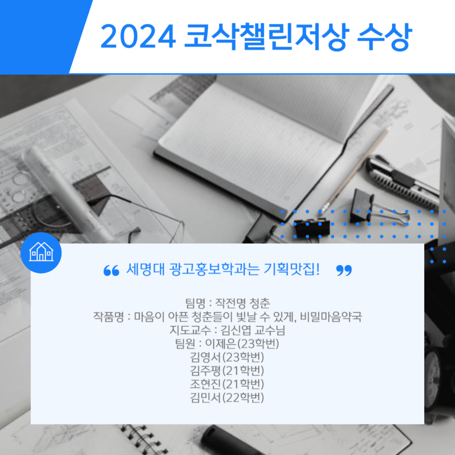 2024년도 대한민국 대학생 광고대회에서 챌린저상을 수상했습니다.
