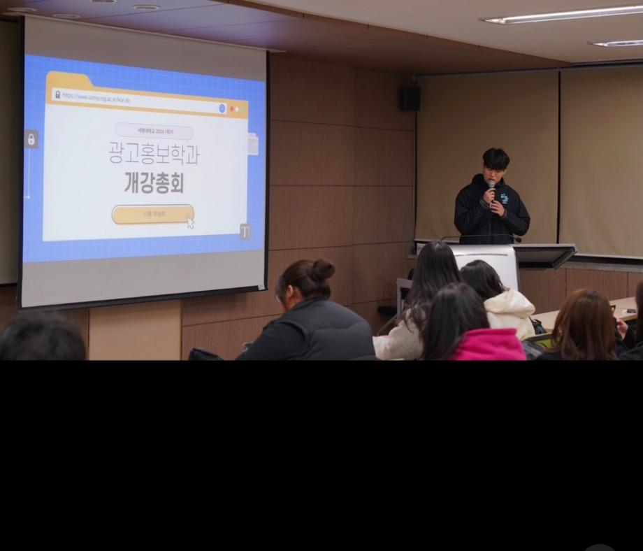 본문 시작 홈으로 매력적인 학과소개 매력적인 학과소개 흥미로운 교육과정 특별CC프로그램 We can 취업 따뜻한 커뮤니티 홈페이지가이드 지금 우리 광홍은 학과개요 학과연혁 교수소개 Wilco로 보는광고홍보학과 지금 우리 광홍은 지금 우리 광홍은 페이스북 트위터 프린트 2026년도 1학기 개강총회 광고홍보학과 70 2026-03-27 새로운 식구들이 입학했어요. 26학번 신입생 여러분 환영합니다. 신입생과 재학생 여러분 2026년 1학기도 건강하고 행복하게 지내봐요 : ) 따뜻하고 강한 학과! 광고홍보학과! 목록 이전새해 복 많이 받으세요 : )