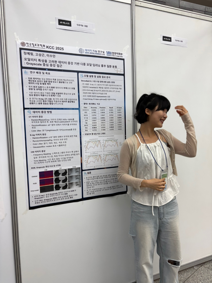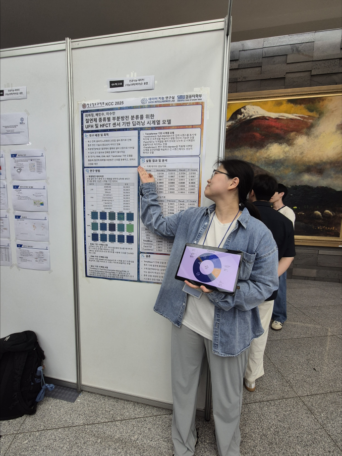 본문 시작 홈으로 학부활동 학부소개 학부활동 교육과정 커뮤니티 학부생활 입학안내 홈페이지가이드 학부행사 학부행사 학생회 활동 전공 동아리 학부갤러리 학부행사 페이스북 트위터 프린트 2025 한국컴퓨터종합학술대회 논문 발표 참가 - 2 컴퓨터학부 730 2025-07-09 국내 컴퓨터분야 최대 학술대회인 2025 한국컴퓨터종합학술대회 논문 발표에 참여한 이수현, 이하은, 장영진, 정예림, 진동민, 최하정 학생입니다. 모두 고생하셨습니다! 목록 이전2025 한국컴퓨터종합학술대회 논문 발표 참가 - 1 다음 - KCC2025 세명대학교 데이터지능연구실 (이수안 교수) 특별공로상 수상 만족도조사 만족도 조사 이 페이지에서 제공하는 정보에 대하여 만족하시나요? 매우만족 만족 보통 불만족 매우불만족