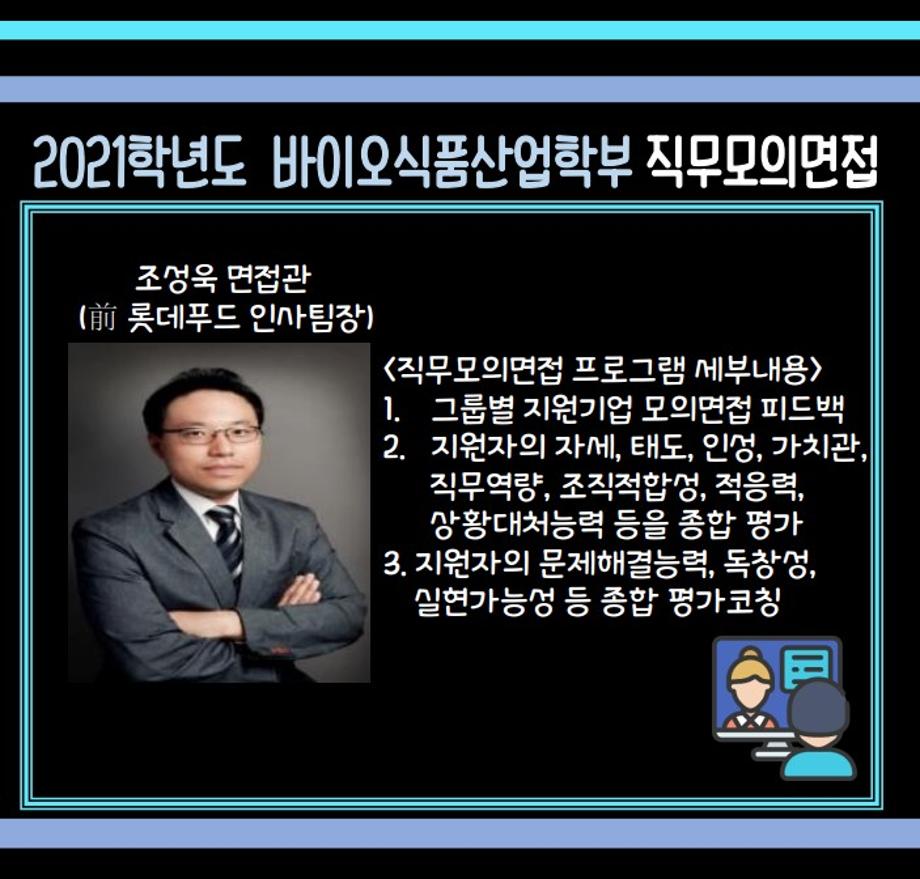 본문 시작 홈으로 학부소개 학부소개 진로·취업 교육과정 커뮤니티 대학원 입학상담 홈페이지가이드 갤러리 학부비전 학부장 인사말 학부연혁 학부장점 교수소개 교육시설 MOU 체결 갤러리 갤러리 페이스북 트위터 프린트 2021 직무모의면접 바이오식품영양학부 2361 2022-01-24 2021 직무모의면접 목록 이전2021 메디푸드개발 랜선조리경연대회 다음 2022 새내기 두드림 행사 만족도조사 만족도 조사 이 페이지에서 제공하는 정보에 대하여 만족하시나요? 매우만족 만족 보통 불만족 매우불만족