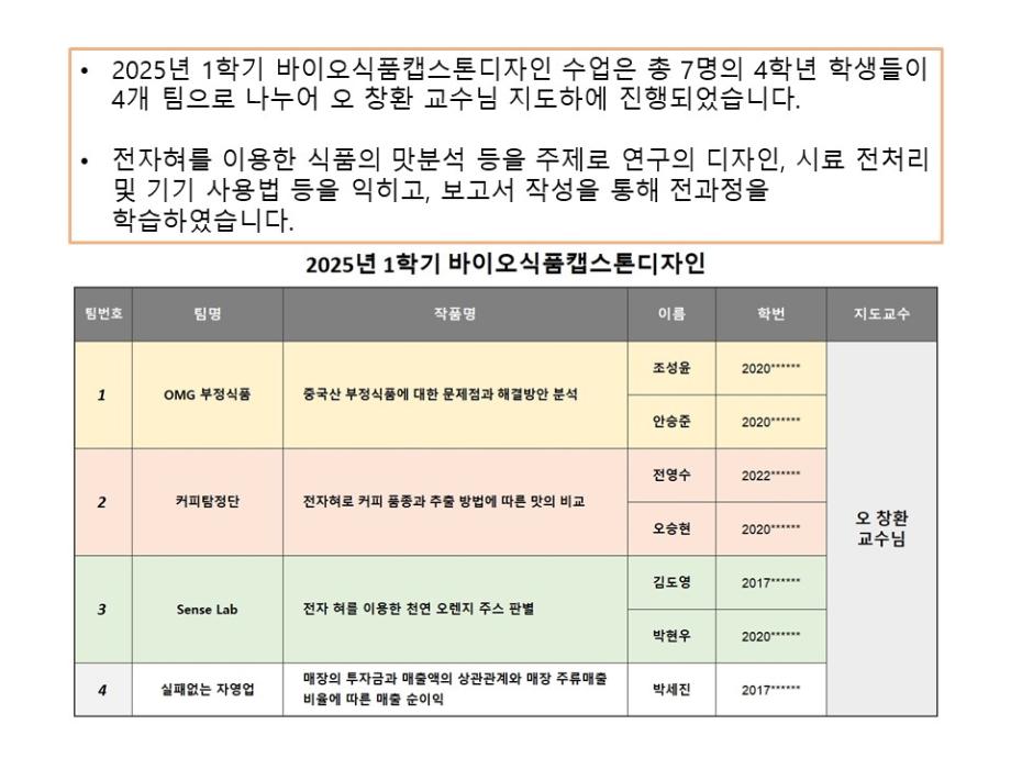 본문 시작 홈으로 학부소개 학부소개 진로·취업 교육과정 커뮤니티 대학원 입학상담 홈페이지가이드 갤러리 학부비전 학부장 인사말 학부연혁 학부장점 교수소개 교육시설 MOU 체결 갤러리 갤러리 페이스북 트위터 프린트 2025년 1학기 바이오캡스톤디자인 바이오식품영양학부 604 2025-06-21 목록 이전HACCP교육 이전20250507 제천고 진로아카데미전문가특강(오창환교수님) 만족도조사 만족도 조사 이 페이지에서 제공하는 정보에 대하여 만족하시나요? 매우만족 만족 보통 불만족 매우불만족