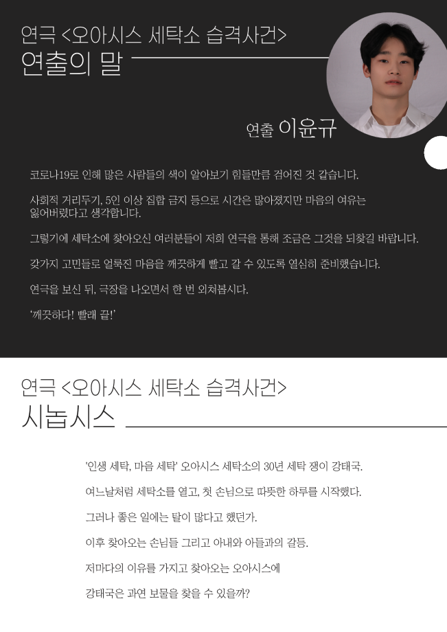 본문 시작 홈으로 학과과정 학과소개 입학정보 교수소개 학과과정 커뮤니티 공연예매 안내 홈페이지가이드 비교과프로그램 교육과정 전공교육 체계도 비교과프로그램 MOU 체결 하계, 동계 프로젝트 하계, 동계 프로젝트 연극놀이 지도사 양성 교육 현장실습 프로그램 액팅플러스 하계, 동계 프로젝트 페이스북 트위터 프린트 2021학년도 동계 프로젝트 ‘오아시스 세탁소 습격사건’ 연기예술학과 2531 2021-04-29 목록 이전2021학년도 동계 프로젝트 ‘자살에 관하여’ 다음 2021학년도 하계 프로젝트 ' 쇼팔로비치 유랑극단' 만족도조사 만족도 조사 이 페이지에서 제공하는 정보에 대하여 만족하시나요? 매우만족 만족 보통 불만족 매우불만족