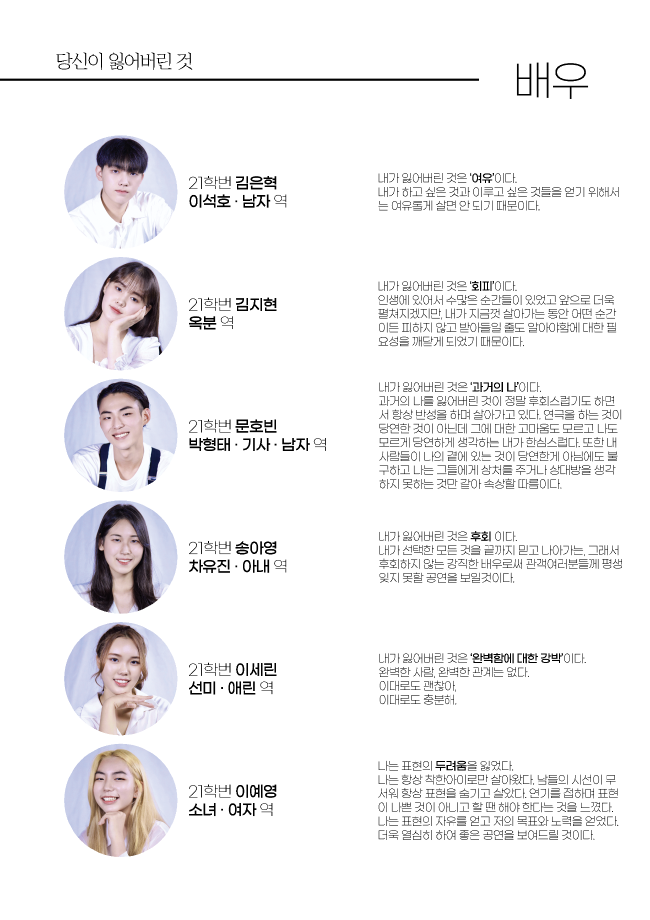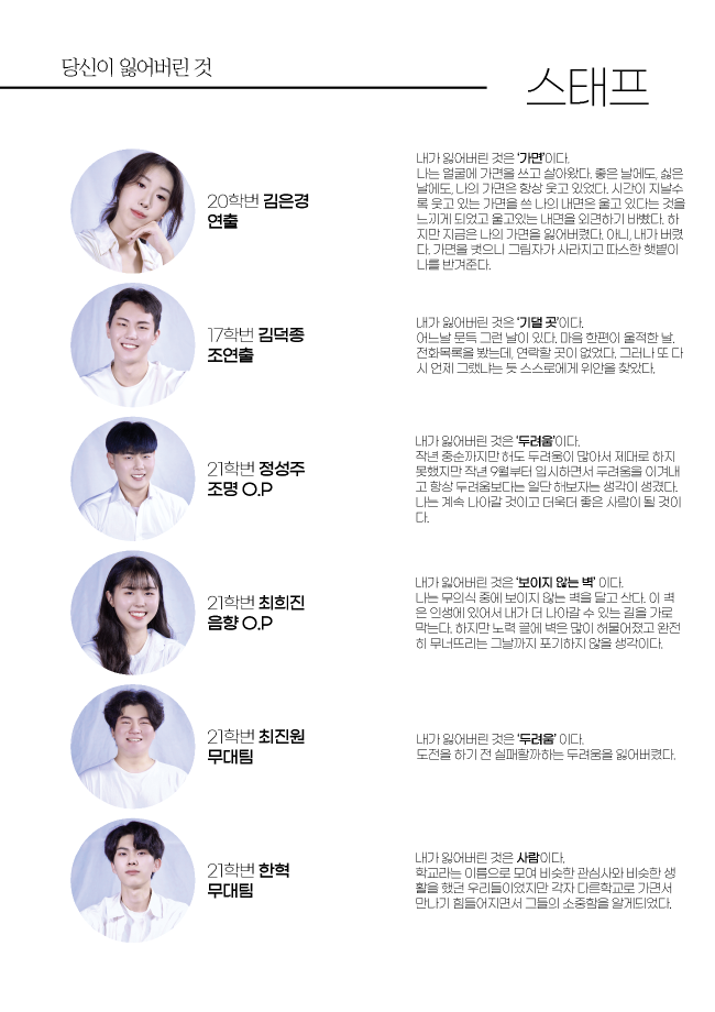 본문 시작 홈으로 학과과정 학과소개 입학정보 교수소개 학과과정 커뮤니티 공연예매 안내 홈페이지가이드 비교과프로그램 교육과정 전공교육 체계도 비교과프로그램 MOU 체결 하계, 동계 프로젝트 하계, 동계 프로젝트 연극놀이 지도사 양성 교육 현장실습 프로그램 액팅플러스 하계, 동계 프로젝트 페이스북 트위터 프린트 2021학년도 하계 프로젝트 '당신이 잃어버린 것' 연기예술학과 2517 2021-08-25 목록 이전2021학년도 하계 프로젝트 ' 쇼팔로비치 유랑극단' 이전2021 극단 포즈 창단 공연 '어정어정 걸어오신다' 만족도조사 만족도 조사 이 페이지에서 제공하는 정보에 대하여 만족하시나요? 매우만족 만족 보통 불만족 매우불만족