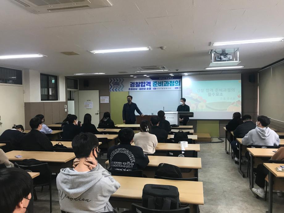 본문 시작 홈으로 학과과정 학과안내 교수소개 학과과정 커뮤니티 홈페이지가이드 비교과프로그램 교육과정 전공교육 체계도 대학원 법학과 비교과프로그램 학사일정 공공법무 지원프로그램 공공법무 지원프로그램 기업법무 지원프로그램 공공법무 지원프로그램 페이스북 트위터 프린트 2021.11.02 경찰 공무원 특강 법학과 3261 2021-11-02 2021년 11월 2일 충주경찰서 사이버수사대 소속 김진호 선배님을 모시고 ' 경찰합격 준비과정의 필수요소' 이라는 주제로 특강을 진행하였습니다. 목록 다음 2021. 11. 03 변호사 특강 담당부서 : 법학과 담당자 : - 연락처 : 043-649-1764 최종수정일 : 2024-10-26 만족도조사 만족도 조사 이 페이지에서 제공하는 정보에 대하여 만족하시나요? 매우만족 만족 보통 불만족 매우불만족