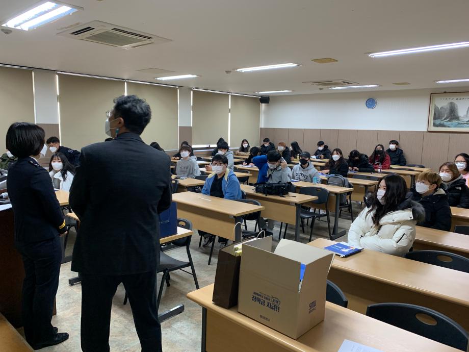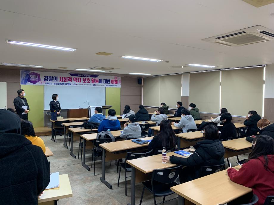 본문 시작 홈으로 학과과정 학과안내 교수소개 학과과정 커뮤니티 홈페이지가이드 비교과프로그램 교육과정 전공교육 체계도 대학원 법학과 비교과프로그램 학사일정 공공법무 지원프로그램 공공법무 지원프로그램 기업법무 지원프로그램 공공법무 지원프로그램 페이스북 트위터 프린트 2020.11.19 경찰 공무원 특강 법학과 3331 2020-11-19 2020년 11월 19일 이윤정 경감님을 모시고 ' 경찰의 사회적 약자 보호 활동에 대한 이해' 이라는 주제로 특강을 진행하였습니다. 목록 다음 2020.11.26 일반공무원 특강 다음 2020.11.19 공인노무사 특강 담당부서 : 법학과 담당자 : - 연락처 : 043-649-1764 최종수정일 : 2024-10-26 만족도조사 만족도 조사 이 페이지에서 제공하는 정보에 대하여 만족하시나요? 매우만족 만족 보통 불만족 매우불만족