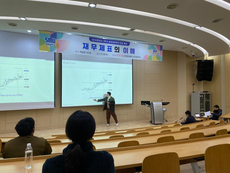 본문 시작 홈으로 교육과정 학과소개 취업정보 교육과정 학과소식 홈페이지가이드 비교과프로그램 교육과정 전공교육 체계도 비교과프로그램 전산회계 특강 전산회계 특강 전산세무 특강 회계 및 세무 공무원 특강 회계 및 세무 분야 진로 특강 전산회계 특강 페이스북 트위터 프린트 2025학년도 2학기 회계세무금융학과 전산회계 특강 회계세무금융학과 87 2026-02-03 2025학년도 2학기 회계사를 초청하여 재무재표에 대한 이해를 주제로 특강을 진행하였습니다. 목록 이전2025학년도 2학기 회계세무금융학과 전산회계 특강 만족도조사 만족도 조사 이 페이지에서 제공하는 정보에 대하여 만족하시나요? 매우만족 만족 보통 불만족 매우불만족