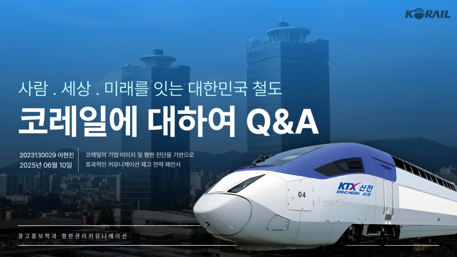 본문 시작 홈으로 흥미로운 교육과정 매력적인 학과소개 흥미로운 교육과정 특별CC프로그램 We can 취업 따뜻한 커뮤니티 홈페이지가이드 작품 갤러리 교육일정 교육과정 전공교육 체계도 졸업후진로 작품 갤러리 작품 갤러리 페이스북 트위터 프린트 [평판관리]코레일 평판관리커뮤니케이션 기획서 광고홍보학과 1769 2025-06-25 2025년도 1학기 평판관리커뮤니케이션 이현진_코레일 평판관리 목록 이전[2024KOSAC]대한민국대학생광고대회 출품작 다음 [2025KOSAC]대한민국대학생광고대회