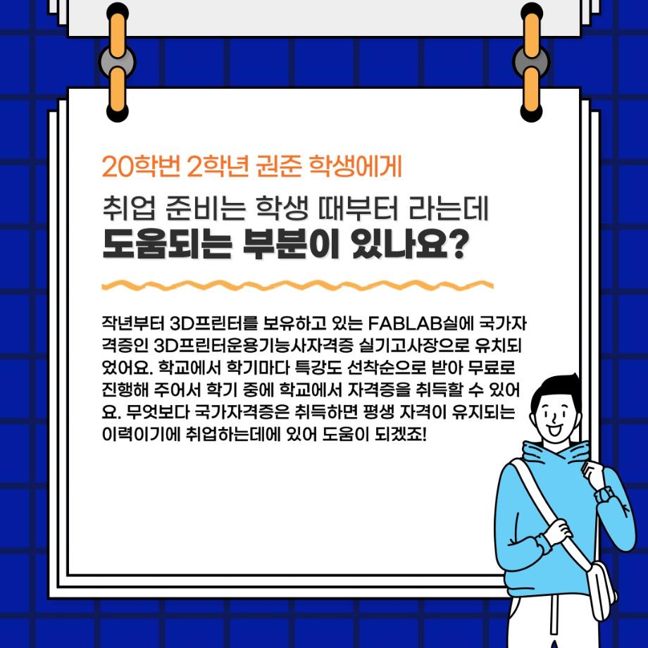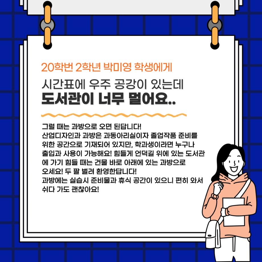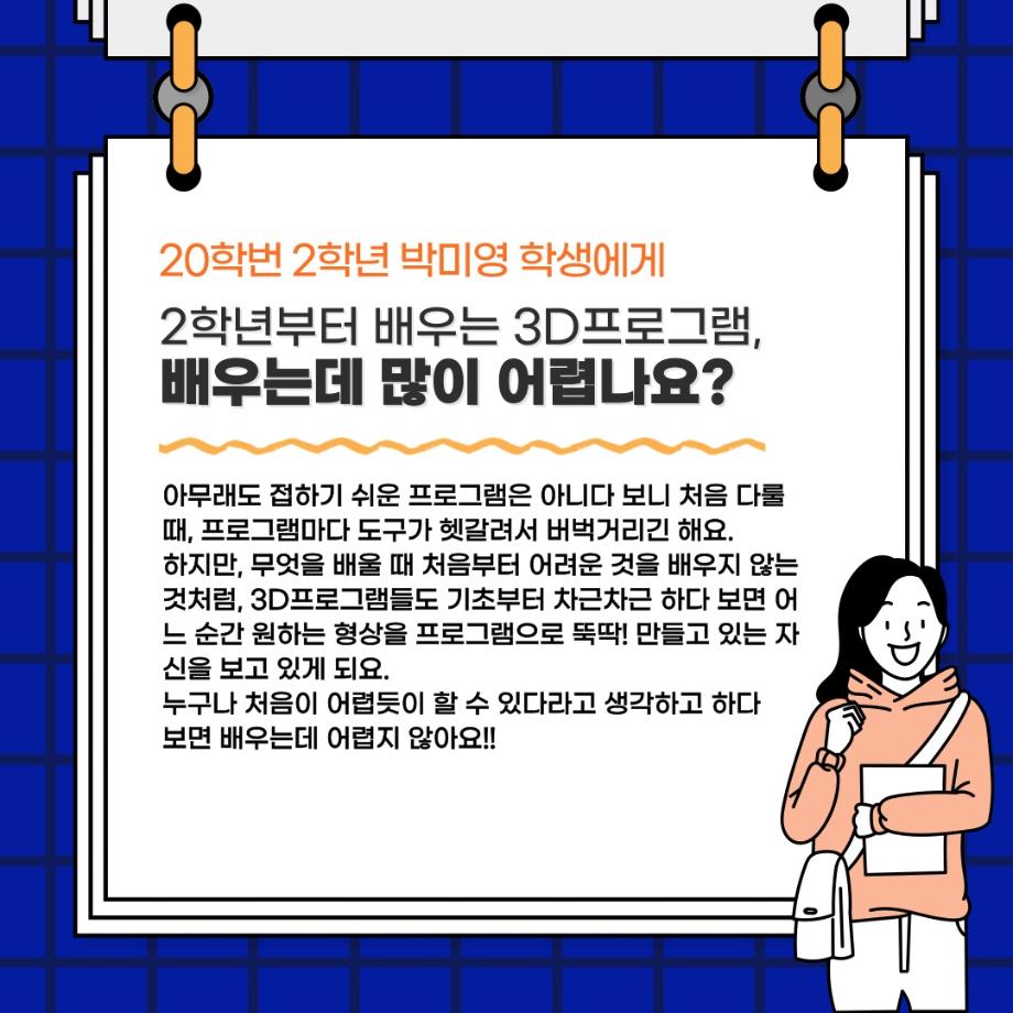 본문 시작 홈으로 교과과정 학과소개 교수소개 교과과정 학과생활 홈페이지가이드 진로 진로 교육과정 전공교육 체계도 자격증 전시회 진로 페이스북 트위터 프린트 산업디자인학과 재학생 인터뷰(2학년) 산업디자인학과 1800 2022-01-24 목록 이전산업디자인학과 재학생 인터뷰(1학년) 다음 산업디자인학과 재학생 인터뷰(3학년) 만족도조사 만족도 조사 이 페이지에서 제공하는 정보에 대하여 만족하시나요? 매우만족 만족 보통 불만족 매우불만족