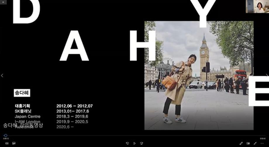 9주차에는 SK텔레콤의 UX 디자이너를 거쳐 현재 런던에서 디자이너로 활동중인 송다혜 디자이너의 < SK 텔레콤과 런던 디자인>에 대한 특강을 들었습니다.