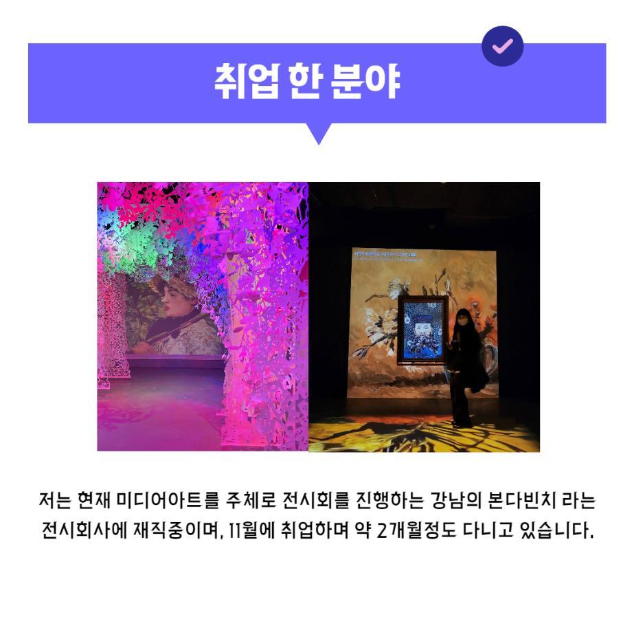 본문 시작 홈으로 입학/취업 학과소개 학과과정 시영소식 입학/취업 AI 학과자랑 SNS소통 홈페이지가이드 취업지금 입학여기 취업지금 전공소개 취업지금 페이스북 트위터 프린트 시디과 졸업 후 어디로 나아갈까? 시각영상디자인학과 1740 2022-01-24 목록 이전졸업생의 취업 우수사례 다음 시각실무체험 수업_디자인현장의 목소리를 듣는 특강 담당부서 : 시각영상디자인학과 담당자 : - 연락처 : 043-649-1726 최종수정일 : 2024-10-26 만족도조사 만족도 조사 이 페이지에서 제공하는 정보에 대하여 만족하시나요? 매우만족 만족 보통 불만족 매우불만족