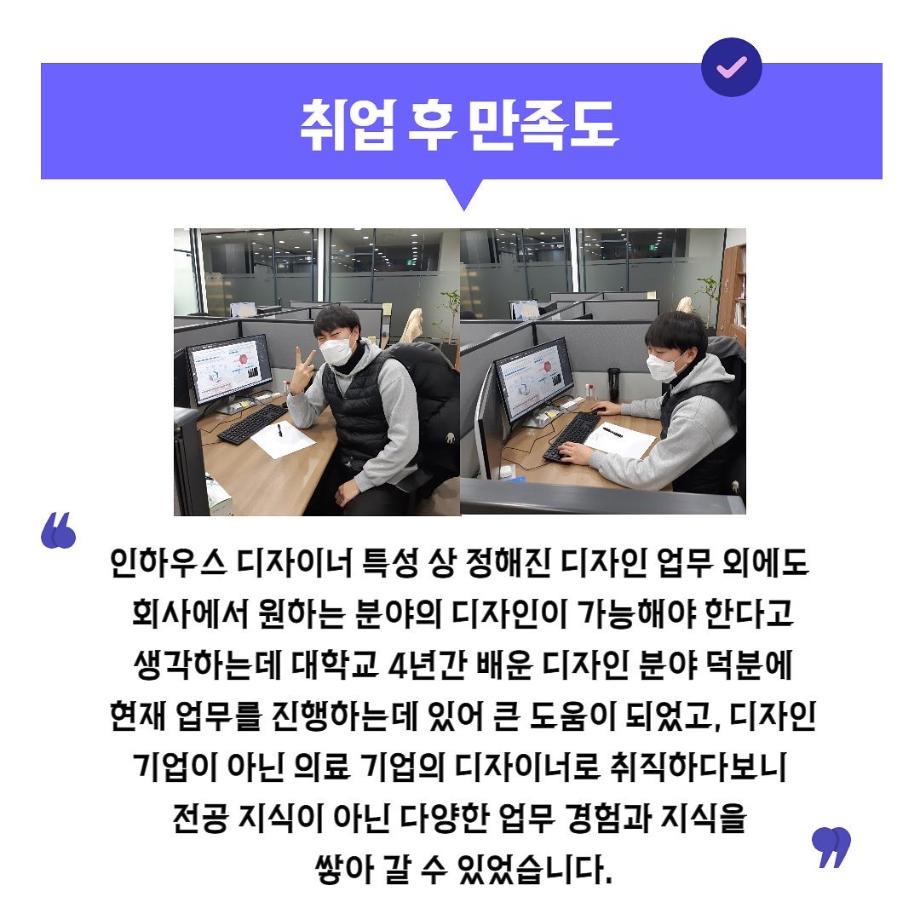 본문 시작 홈으로 입학/취업 학과소개 학과과정 시영소식 입학/취업 AI 학과자랑 SNS소통 홈페이지가이드 취업지금 입학여기 취업지금 전공소개 취업지금 페이스북 트위터 프린트 시디과 졸업 후 어디로 나아갈까? 6 시각영상디자인학과 2855 2022-02-07 목록 이전시디과 졸업 후 어디로 나아갈까? 5 다음 “시각디자인학과 2002학번 반혜승 졸업생” -미국의 세계적 자산운용 회사 Fidelity Investment의 Principal User Experience Desiger 취업! 담당부서 : 시각영상디자인학과 담당자 : - 연락처 : 043-649-1726 최종수정일 : 2024-10-26 만족도조사 만족도 조사 이 페이지에서 제공하는 정보에 대하여 만족하시나요? 매우만족 만족 보통 불만족 매우불만족