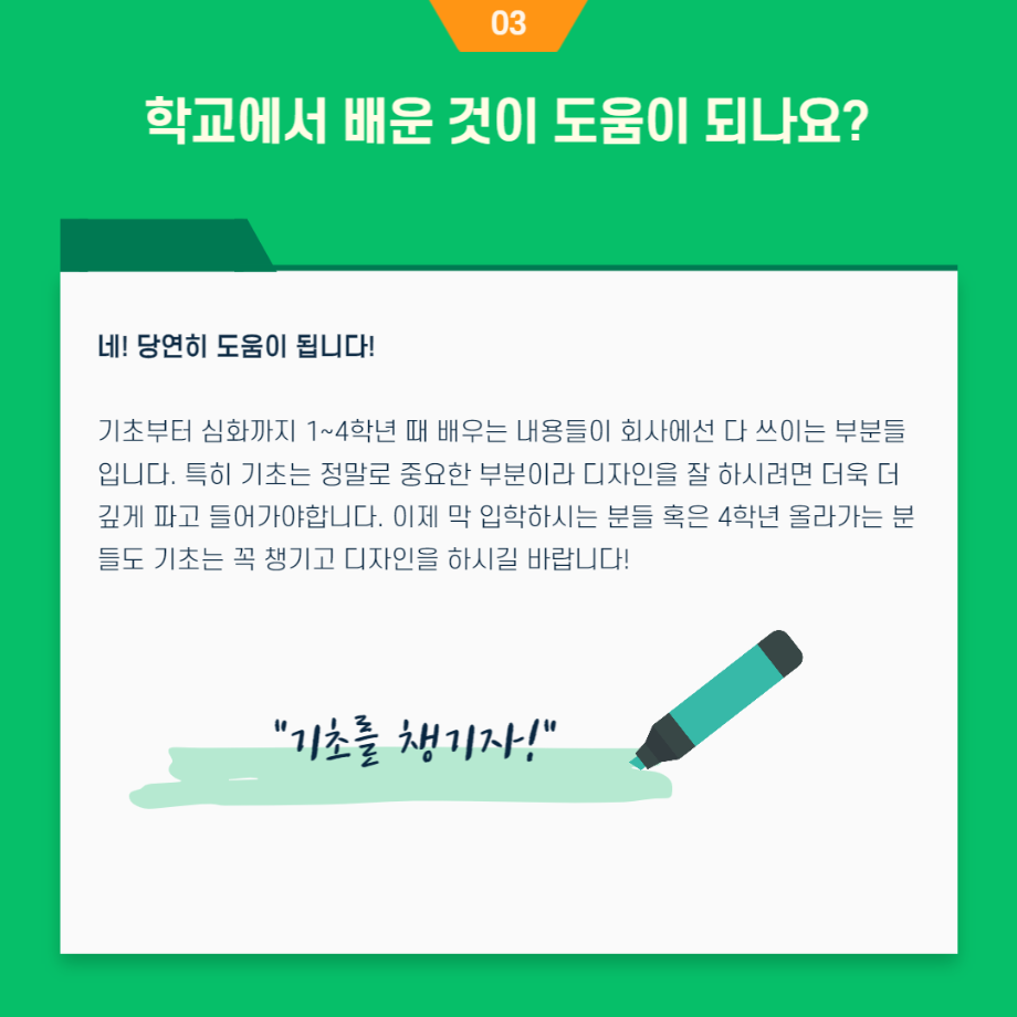 본문 시작 홈으로 입학/취업 학과소개 학과과정 시영소식 입학/취업 AI 학과자랑 SNS소통 홈페이지가이드 취업지금 입학여기 취업지금 전공소개 취업지금 페이스북 트위터 프린트 시각영상디자인학과 윤지훈 졸업생 - 가산디지털단지 디자인회사 취업! 시각영상디자인학과 2564 2023-03-29 목록 이전시각영상디자인학과 19학번 송나은 졸업생 - 서울 강남구 대치동 광고회사 취업! 다음 취업사례 중 대학원 진학 편 담당부서 : 시각영상디자인학과 담당자 : - 연락처 : 043-649-1726 최종수정일 : 2024-10-26 만족도조사 만족도 조사 이 페이지에서 제공하는 정보에 대하여 만족하시나요? 매우만족 만족 보통 불만족 매우불만족