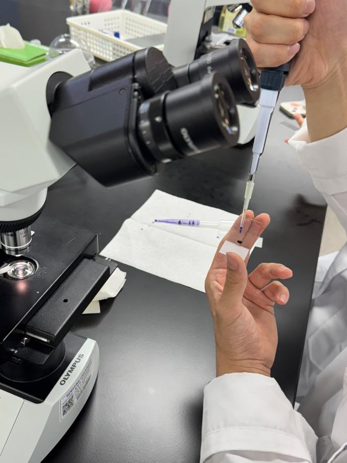 본문 시작 초생체염색 임상병리학과 466 2025-05-29 New Methylene blue 시약을 이용하여 그물적혈구를 보기위한 초생체염색 후 현미경으로 검경을 하였습니다 목록 이전혈액도말표본 제작 & 회식 다음 오리엔테이션&회식 담당부서 : 임상병리학과 담당자 : - 연락처 : 043-649-1537 최종수정일 : 2024-10-26 만족도조사 만족도 조사 이 페이지에서 제공하는 정보에 대하여 만족하시나요? 매우만족 만족 보통 불만족 매우불만족