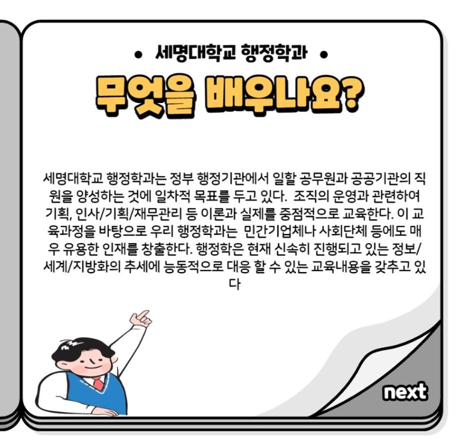1️⃣. 세명대학교 행정학과의 모든것을 설명요정 행정이와 함께 같이 알아봅시다