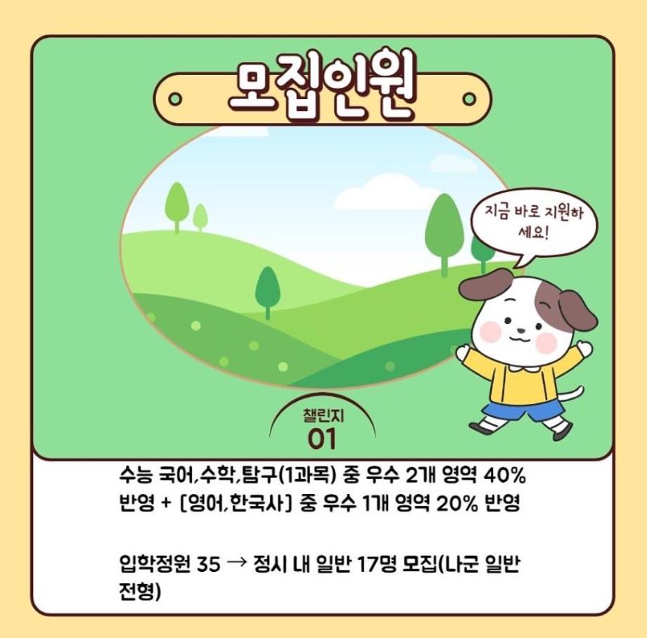 현재 수시,정시 지원 인원이 부족하여 관련 자료를 이용해 인스타그램 또는 페이스북과 같은 sns을 통한 공유로 학우분들의 도움을 얻고자 합니다.
