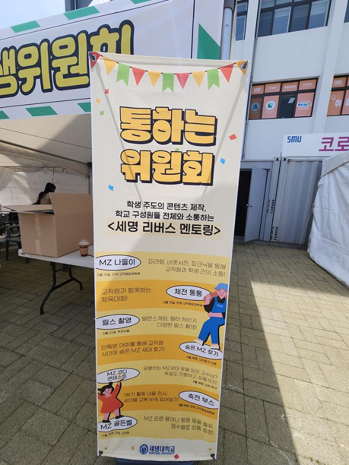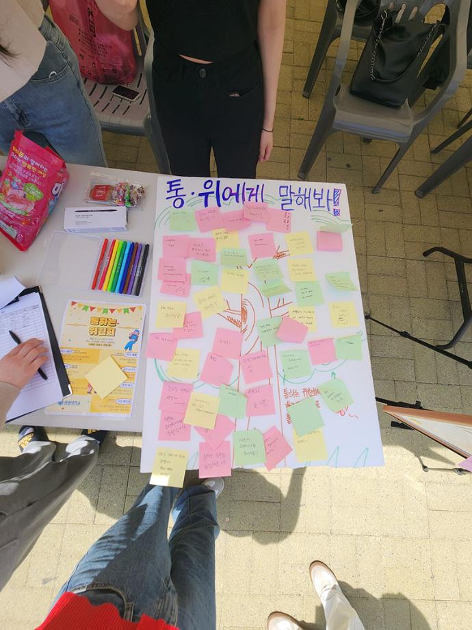 세명대학교 재미있는 경험을 위한 학생위원회 중 통하는 위원회는 23년 5월 17(수) 11시 30분부터 13시 30분까지 학생회관 앞 광장에서 <위원회 홍보 및 설문조사>를 진행하였다.