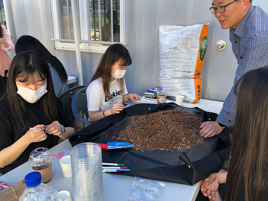총 100여명의 재학생이 마가렛, 미니해바라기, 채송화 씨앗을 복불복으로 결정하여 직접 씨앗을 상토에 심는 체험을 진행하였다.