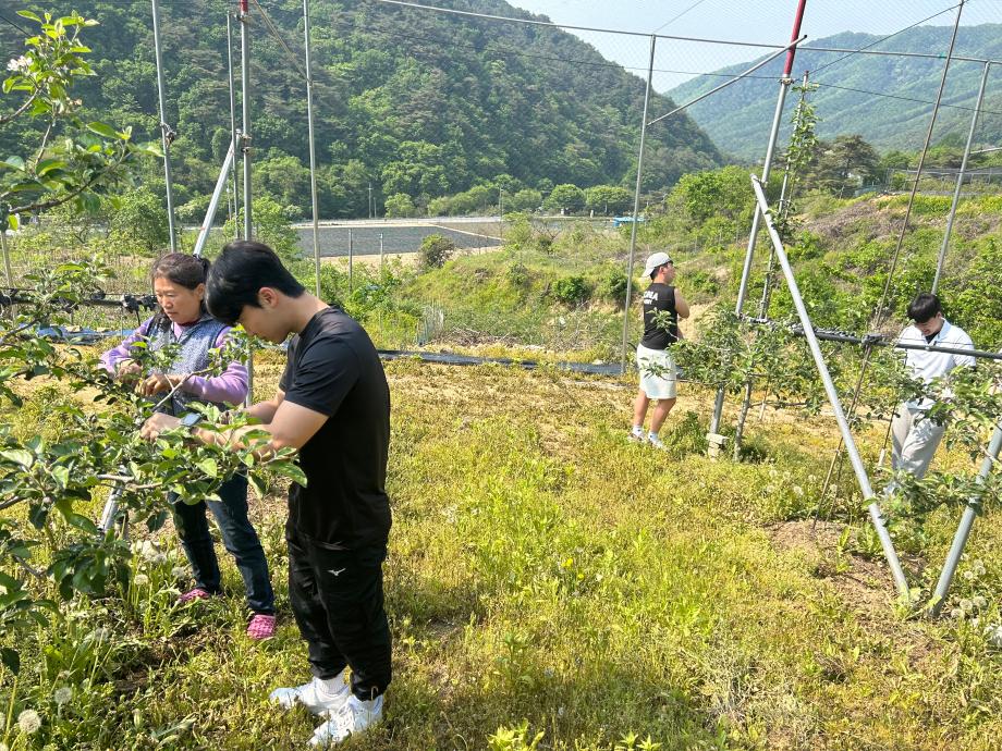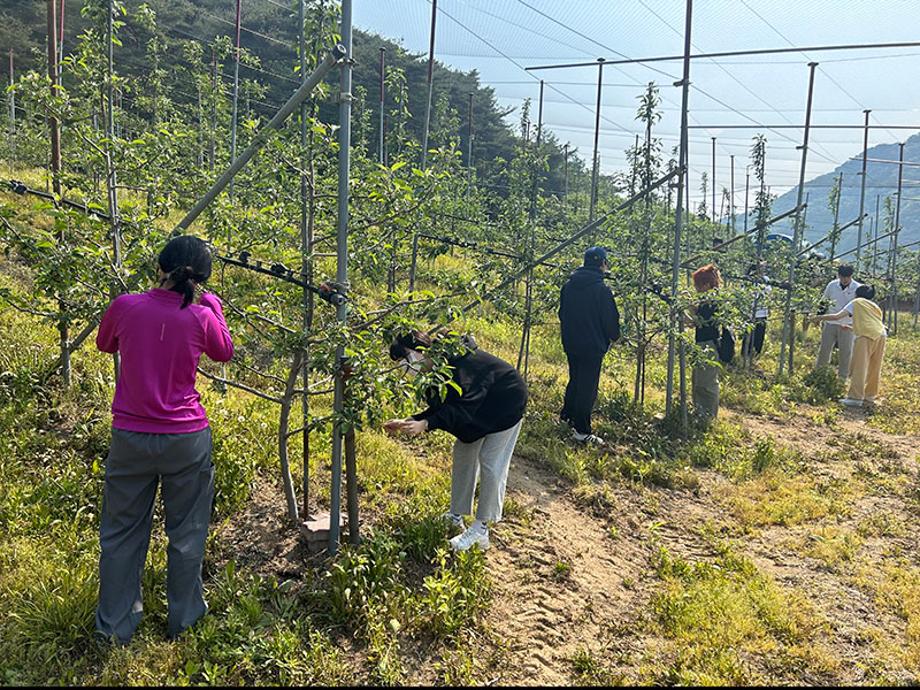 본문 시작 홈으로 포토갤러리 학생위원회 개요 학생위원회 소개 공지사항 활동결과 홈페이지가이드 포토갤러리 페이스북 트위터 프린트 [벗어나는 위원회] 농촌봉사활동 학생처 2709 2023-06-01 세명대학교 재미있는 경험을 위한 학생위원회 중 벗어나는 위원회가 5월 13일(토)에 제천시 봉양읍 명암리 일대에서 농촌봉사활동을 시행하였다. RCY커뮤니티 소속 학생들과 함께 사과 꽃따기 봉사활동을 진행하였으며, 총 20여명의 학생들이 참여하였다. 벗어나는 위원회는 농촌봉사활동 뿐만 아니라 다양한 탐험(여행) 활동을 계획하고 있다. 목록 이전[통하는 위원회]체전통통 다음 [알려주는 위원회] 너의MBTI를 알려줘 담당부서 : 장학복지팀 담당자 : - 연락처 : 043-649-1142 최종수정일 : 2024-10-26 만족도조사 만족도 조사 이 페이지에서 제공하는 정보에 대하여 만족하시나요? 매우만족 만족 보통 불만족 매우불만족