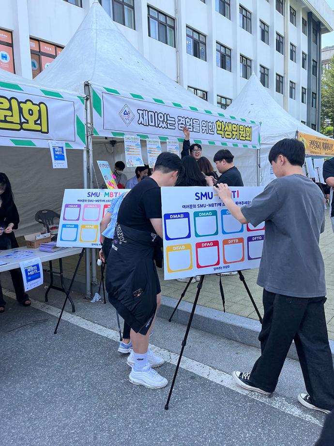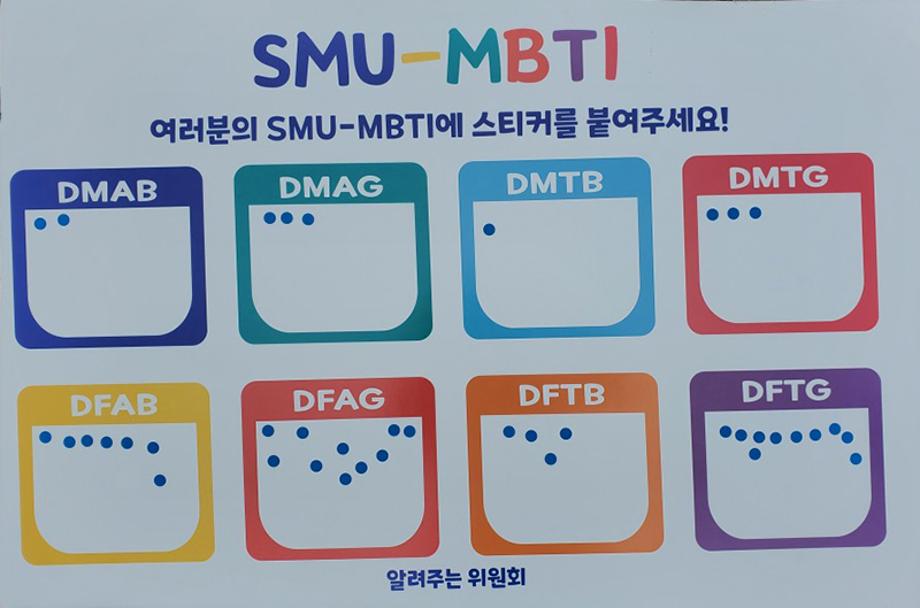 세명대학교 재미있는 경험을 위한 학생위원회 중 알려주는 위원회는 5월 17일(수) 학생회관 앞에서 ‘너의 MBTI를 알려줘!’라는 행사를 진행하였다.