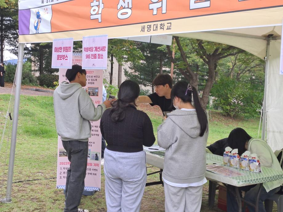 이상한위원회 2023학년도 1학기 활동실적 및 2학기 활동계획 등을 안내하였으며, 학생식당 개선사항에 대한 SNS 인증 이벤트를 실시, 이벤트에 참여한 선착순 100명에게 간단한 다과를 증정하였다.