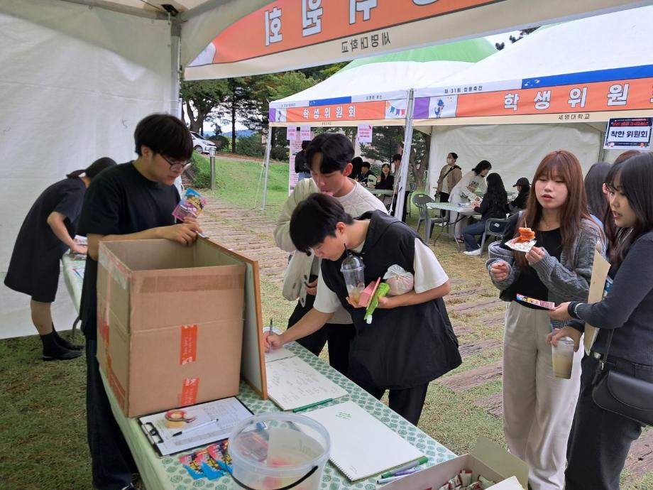 세명대학교 재미있는 경험을 위한 학생위원회 중 통하는 위원회는 23년 9월 21일(목) 14시 30분부터 18시까지 뭐든지광장에서 < MZ투표부스 >를 진행하였다.