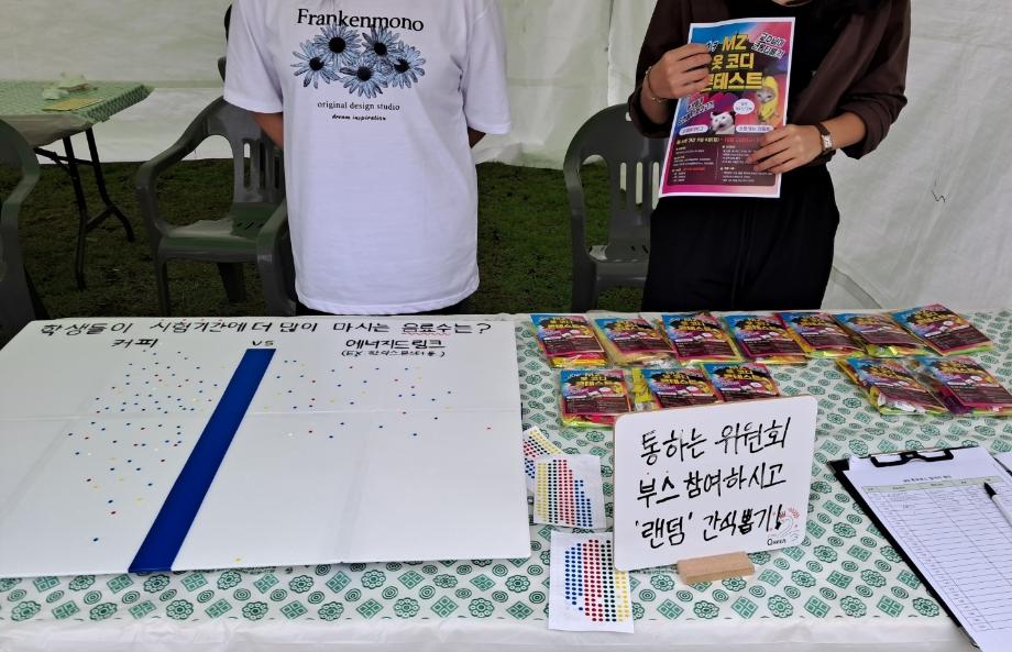 통하는 위원회에서 준비한 설문조사 참여 시 랜덤 뽑기를 통해 위원회에서 직접 포장한 간식을 제공하였으며 이번 행사를 통해 취합한 의견은 추후 MZ 골든벨 행사에도 참고할 예정이다.