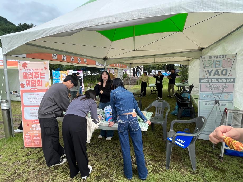 본문 시작 홈으로 포토갤러리 학생위원회 개요 학생위원회 소개 공지사항 활동결과 홈페이지가이드 포토갤러리 페이스북 트위터 프린트 [알려주는 위원회] 삼행시? 누가잘해 대학혁신지원단 1941 2023-10-05 알려주는 위원회는 2023년 9월 21일(목), 뭐든지광장에서 11시부터 14시 30분까지 <삼행시? 누가 잘해?> 홍보부스를 운영하였다. 선착순 키링 증정, 팔로우이벤트, ‘세명대’ 삼행시 이벤트를 운영하였으며, 총 95명의 학생이 참여하였다. 삼행시 이벤트 중, 가장 재치 있는 문구는 아래와 같다 세: 세시반에 명 : 명륜진사갈비갈래? 대 : 대박맛잇겟당’ 목록 이전[통하는 위원회] MZ투표부스운영 다음 [ 약속하는 위원회] 약속바구니 담당부서 : 장학복지팀 담당자 : - 연락처 : 043-649-1142 최종수정일 : 2024-10-26 만족도조사 만족도 조사 이 페이지에서 제공하는 정보에 대하여 만족하시나요? 매우만족 만족 보통 불만족 매우불만족