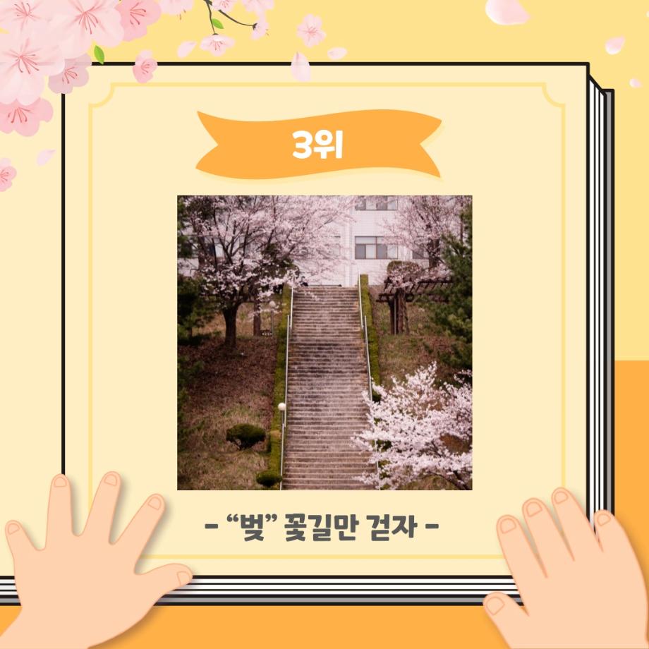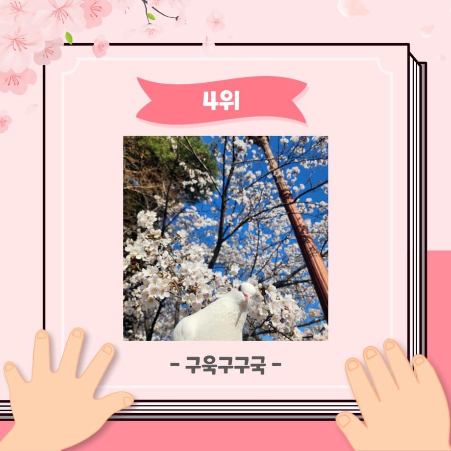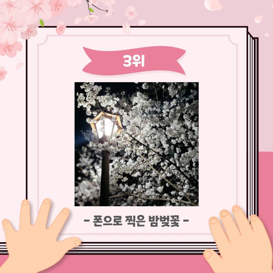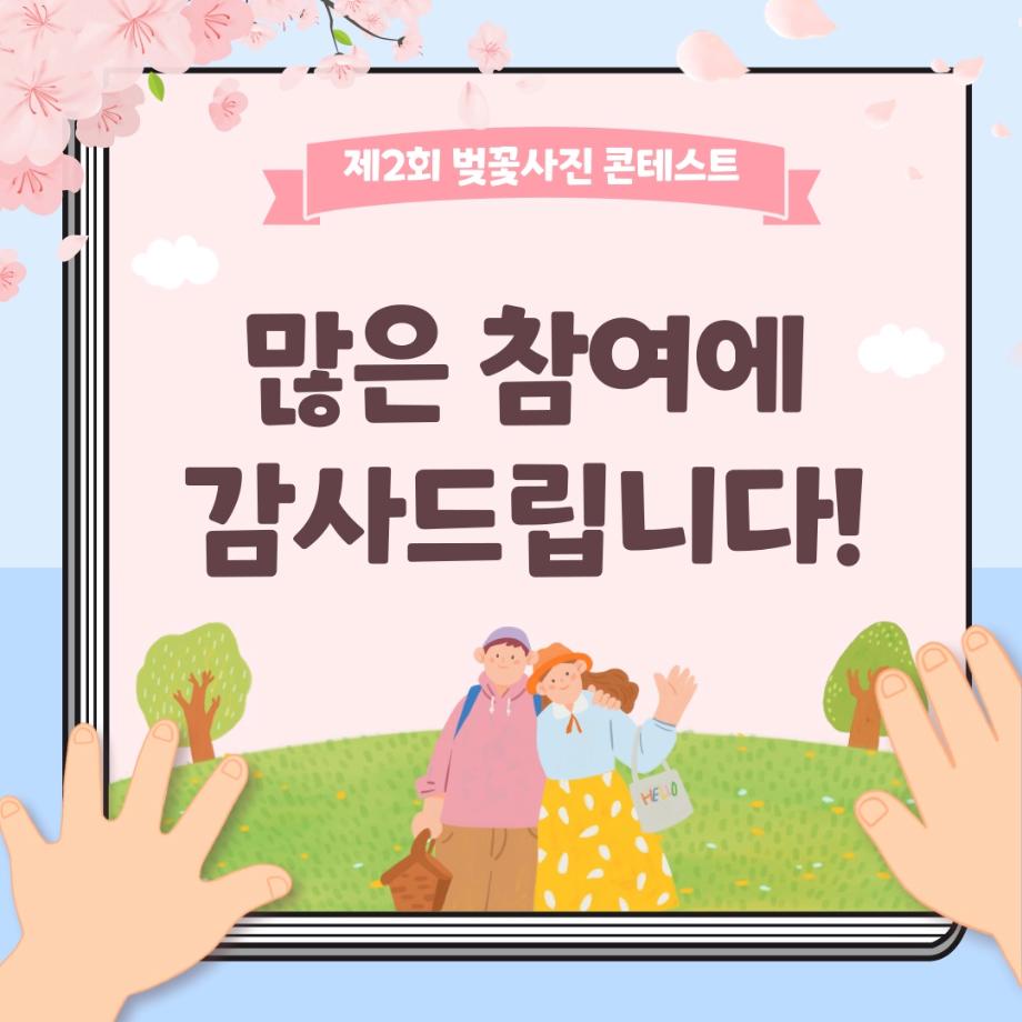 본문 시작 홈으로 포토갤러리 학생위원회 개요 학생위원회 소개 공지사항 활동결과 홈페이지가이드 포토갤러리 페이스북 트위터 프린트 [꽃피는 위원회] 벚꽃사진 콘테스트 결과 학생처 2091 2024-05-07 2024학년도 벚꽃사진 콘테스트 선정 결과 안내 1. 접수: 2024.04.02(화)~12(금) 2. 참가인원 : 99명 3. 선정 - 1차선정 : 17개 작품 선정(꽃피는 위원회 선정) - 2차(최종) 선정 : 10개 작품 선정(순위 결정) * 구성원 선정참여 :171명 참여 목록 이전[생각하는 위원회] 해먹존 해먹설치 및 환경 정리 다음 [꽃피는 위원회] 행운을 가져다주는 책갈피 만들기 담당부서 : 장학복지팀 담당자 : - 연락처 : 043-649-1142 최종수정일 : 2024-10-26 만족도조사 만족도 조사 이 페이지에서 제공하는 정보에 대하여 만족하시나요? 매우만족 만족 보통 불만족 매우불만족