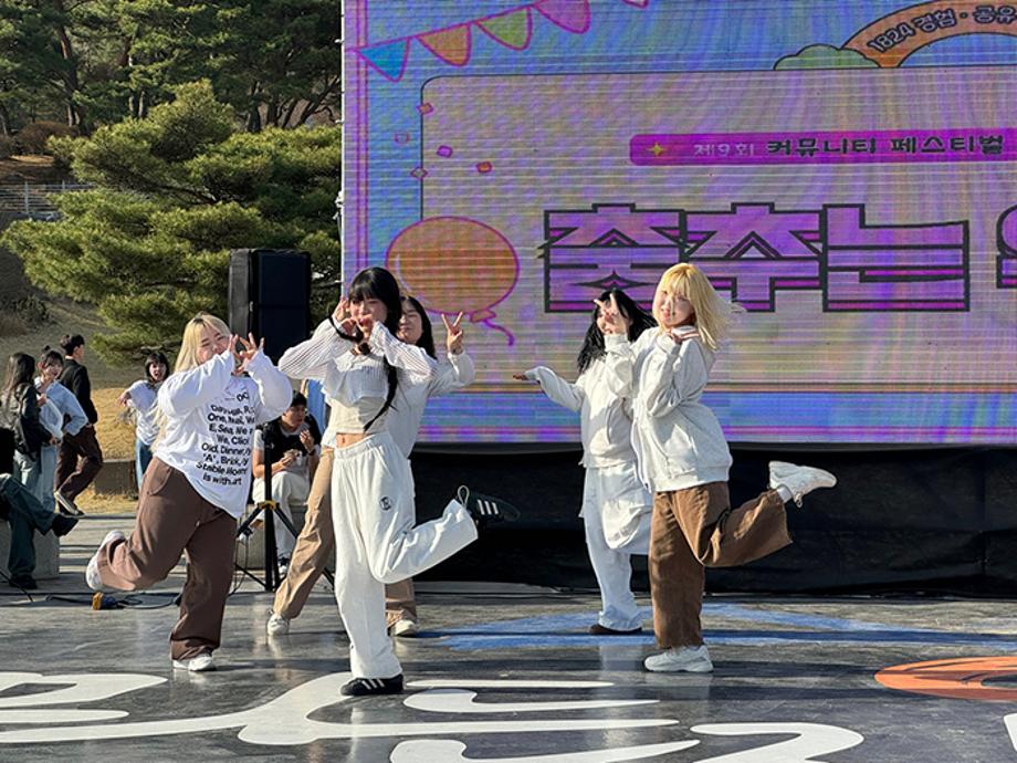 4. 활동목적 : <제9회 커뮤니티 페스티벌> 축하공연에 참여하여 '춤추는 위원회'를 첫 홍보하고, 문화예술 분야 커뮤니티 10팀과 함께 학생커뮤니티 및 학생위원회 활동에 대한 경험을 공유하고 홍보함으로써 역동적인 대학 분위기로 이끌어 재학생들의 대학 생활 만족도를 고취시키기 위함
