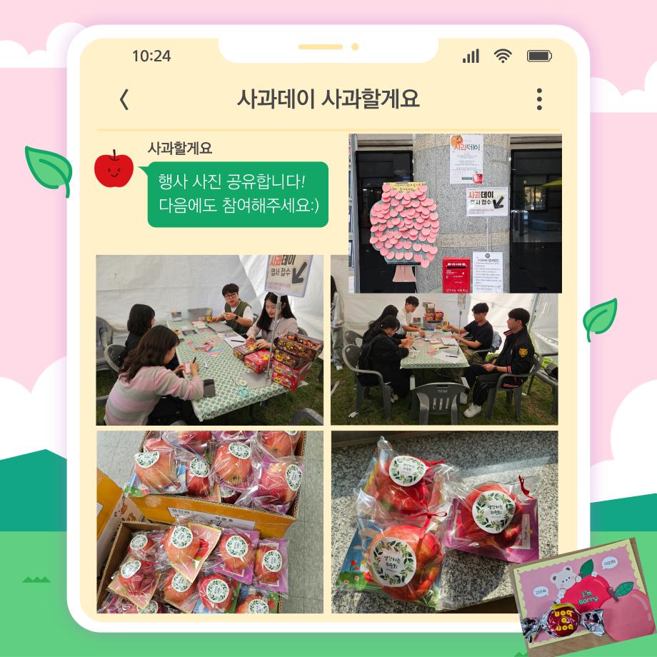 10월 24일 사과데이를 맞이하여 생각하는 위원회에서 친구에게 사과할 수 있는 기회를 제공하였습니다!