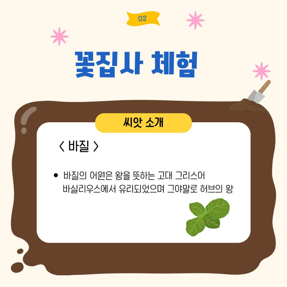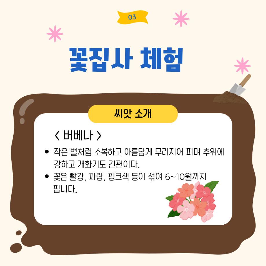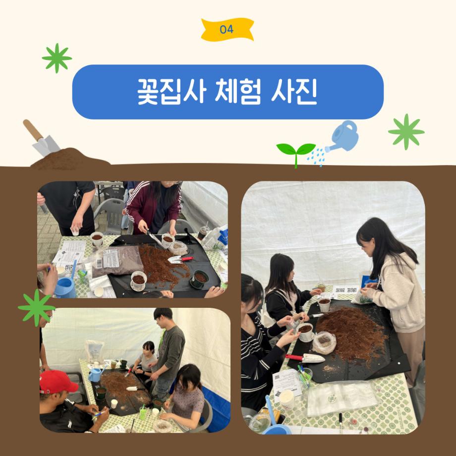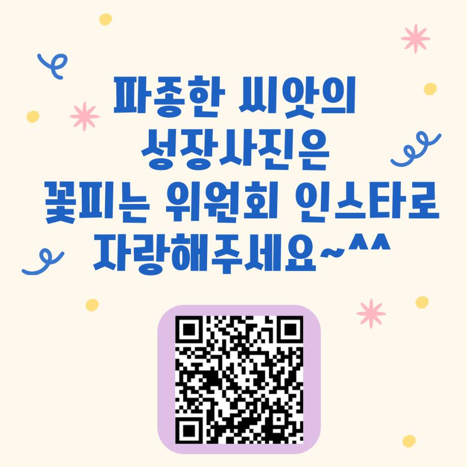 본문 시작 홈으로 포토갤러리 학생위원회 개요 학생위원회 소개 공지사항 활동결과 홈페이지가이드 포토갤러리 페이스북 트위터 프린트 [꽃피는 위원회] 제 4회 사랑의 꽃집사 체험이벤트 학생처 1267 2025-05-28 [꽃피는 위원회] 제 4회 사랑의 꽃집사 체험이벤트 1. 일시: 5월 22일 12시~15시 2. 장소: 학생회관 앞 광장 3. 참여인원: 본교 구성원 114명 참여 4. 행사내용: 랜덤돌리기를 통한 씨앗 선정 후 씨앗 파종 진행, 참여완료자에 한해 만족도 조사 실시 5. 행사 만족도 조사 : 4.9/5.0 목록 이전[약속하는 위원회] 달려라 에코레이서 다음 [생각하는 위원회] 대형 현수막 문구 공모전 'Hear, 위로' 담당부서 : 장학복지팀 담당자 : - 연락처 : 043-649-1142 최종수정일 : 2024-10-26 만족도조사 만족도 조사 이 페이지에서 제공하는 정보에 대하여 만족하시나요? 매우만족 만족 보통 불만족 매우불만족