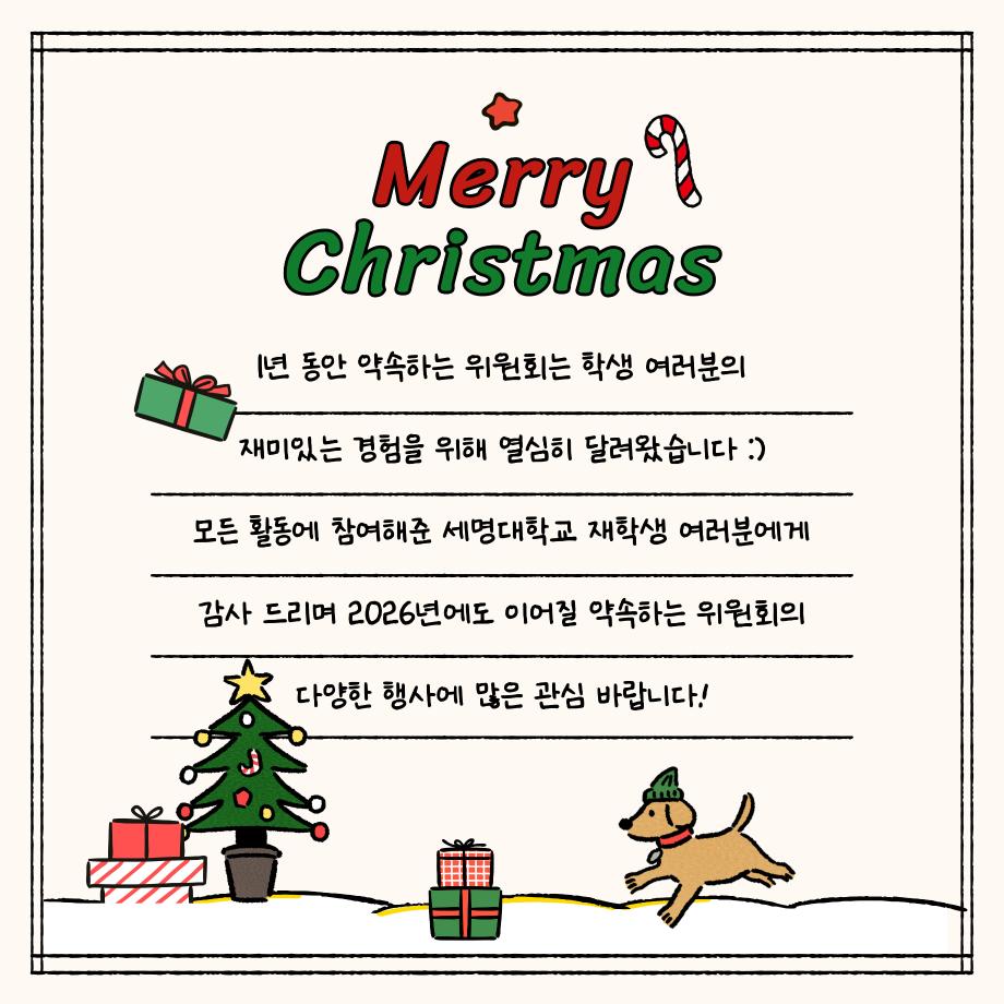 본문 시작 홈으로 포토갤러리 학생위원회 개요 학생위원회 소개 공지사항 활동결과 홈페이지가이드 포토갤러리 페이스북 트위터 프린트 [약속하는,생각하는 위원회] 세명파티시에 학술정보원 712 2025-11-17 안녕하세요 재미있는 경험을 위한 학생위원회 '약속하는 위원회' 입니다! 약속하는 위원회 행사인 세명 파티시에 활동이 성황리에 마무리 되었습니다 :) [세명 파티시에 행사 결과] 일시: 2025년 11월 11일(월) ~ 11월 12일(화) 장소: 도서관 1층 로비 행사 참여자: 85명 1년 동안 약속하는 위원회와 함께 해주셔서 감사드리며, 추후에 이어질 약속하는 위원회 활동에도 많은 관심 바랍니다!! 목록 이전[꽃피는 위원회] 꽃 돌려라 피어라 다음 [생각하는 위원회] 담당부서 : 장학복지팀 담당자 : - 연락처 : 043-649-1142 최종수정일 : 2024-10-26 만족도조사 만족도 조사 이 페이지에서 제공하는 정보에 대하여 만족하시나요? 매우만족 만족 보통 불만족 매우불만족
