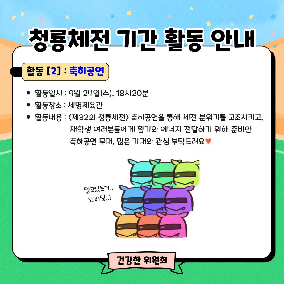 본문 시작 홈으로 공지사항 학생위원회 개요 학생위원회 소개 공지사항 활동결과 홈페이지가이드 프로그램 계획 프로그램 계획 세명대학교 공지사항 프로그램 계획 페이스북 트위터 프린트 [건강한 위원회] back tk spot 제자리로 학생처 248 2025-09-24 목록 이전[맛있는 위원회] 목마르세묭? 다음 [착한 위원회] 약과하나 주면 안잡아 먹지 담당부서 : 장학복지팀 담당자 : - 연락처 : 043-649-1142 최종수정일 : 2024-10-26 만족도조사 만족도 조사 이 페이지에서 제공하는 정보에 대하여 만족하시나요? 매우만족 만족 보통 불만족 매우불만족