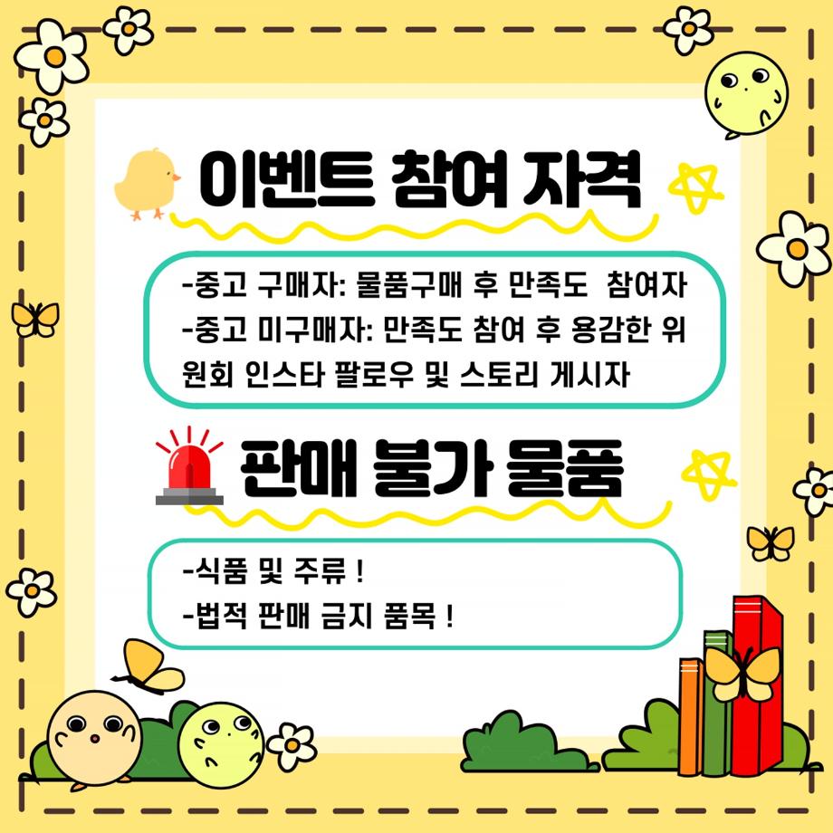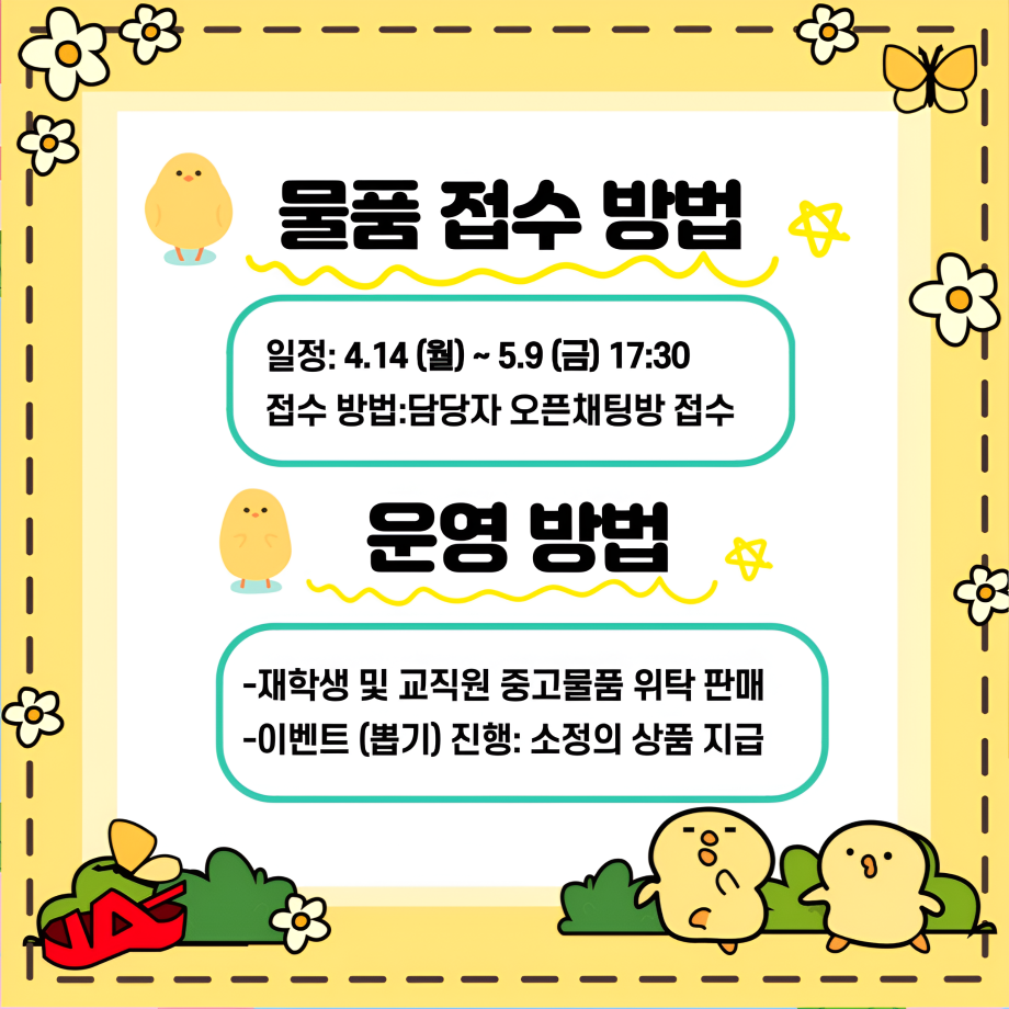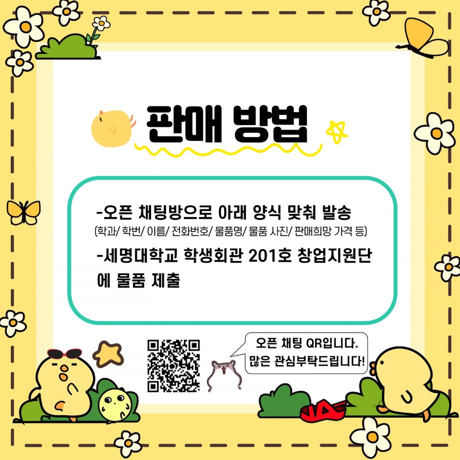 → 오픈채팅방에 판매할 물품 사진과 간단한 설명, 판매자 정보를 기재하여 회신