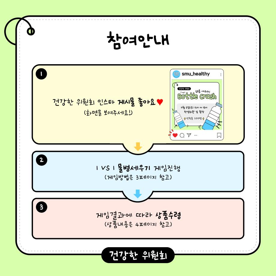 본문 시작 홈으로 공지사항 학생위원회 개요 학생위원회 소개 공지사항 활동결과 홈페이지가이드 프로그램 계획 프로그램 계획 세명대학교 공지사항 프로그램 계획 페이스북 트위터 프린트 [건강한 위원회] 보틀크래시 학생처 322 2025-11-05 [건강한 위원회] 보틀 크래시 일시: 2025.11.05 12시~15시 장소: 학생회관 앞 광장 목록 이전[맛있는 위원회] 얼죽아 모임에 초대합니다 다음 [용감한 위원회] 창업? 다 이루어질지니~ 담당부서 : 장학복지팀 담당자 : - 연락처 : 043-649-1142 최종수정일 : 2024-10-26 만족도조사 만족도 조사 이 페이지에서 제공하는 정보에 대하여 만족하시나요? 매우만족 만족 보통 불만족 매우불만족