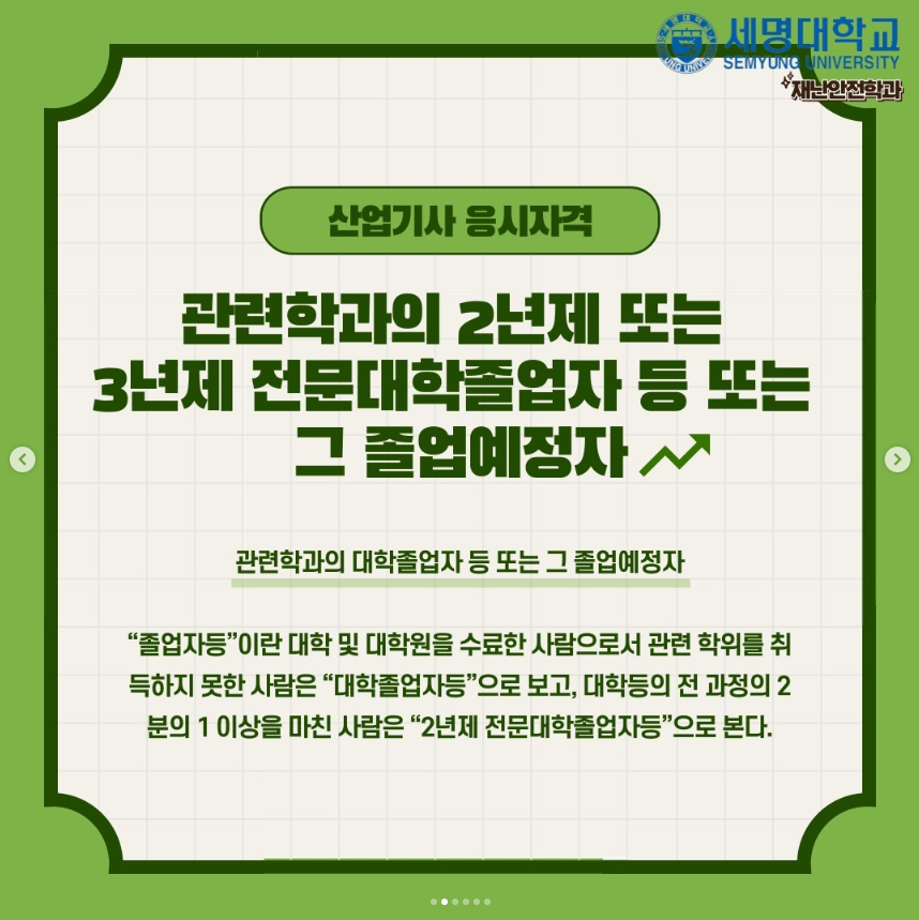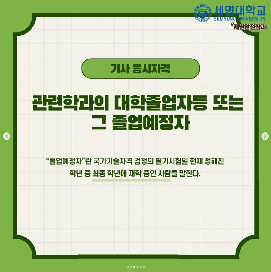 본문 시작 홈으로 커뮤니티 학과소개 교수소개 교육과정 커뮤니티 홈페이지가이드 포토갤러리 학과공지 학사일정 채용정보 및 자료 학생회 포토갤러리 포토갤러리 페이스북 트위터 프린트 산업기사와 기사 취득 필수조건 재난안전학과 3925 2023-10-26 목록 이전2024 세명대학교 재난안전학과 수시모집 원서접수 안내 다음 수시 등록기간 안내 만족도조사 만족도 조사 이 페이지에서 제공하는 정보에 대하여 만족하시나요? 매우만족 만족 보통 불만족 매우불만족