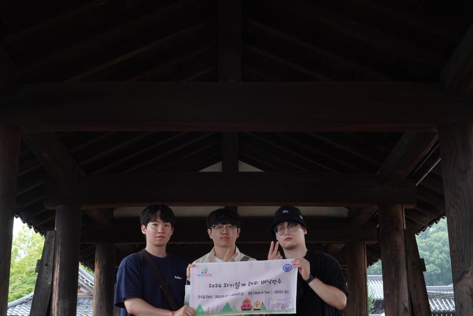 본문 시작 홈으로 커뮤니티 학과소개 교수소개 교육과정 커뮤니티 입학 정보 홈페이지가이드 포토갤러리 학과공지 취업/실습정보 포토갤러리 포토갤러리 페이스북 트위터 프린트 2024 자기설계 해외배낭연수 1팀 "엄마김치 최고" 전기전자공학과 1699 2024-08-26 2024 자기설계 해외배낭연수 1팀 "엄마김치 최고" - 연수일 : 2024.06.25 ~ 07.02 - 연수지 : 일본(고베, 교토, 오사카) - 팀원 : 김재은, 김병현, 방세진 목록 이전2025 세명대학교 수시 모집 원서접수 다음 2024 자기설계 해외배낭연수 2팀 "도쿄여행 성공담" 만족도조사 만족도 조사 이 페이지에서 제공하는 정보에 대하여 만족하시나요? 매우만족 만족 보통 불만족 매우불만족