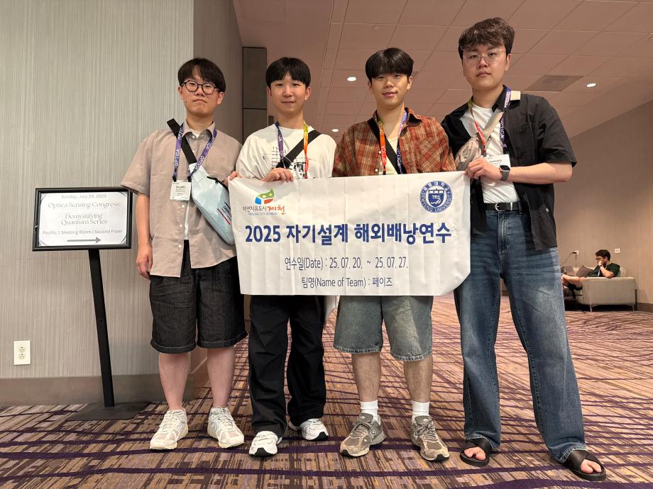 본문 시작 홈으로 커뮤니티 학과소개 교수소개 교육과정 커뮤니티 입학 정보 홈페이지가이드 포토갤러리 학과공지 취업/실습정보 포토갤러리 포토갤러리 페이스북 트위터 프린트 2025 자기설계 해외배낭연수 전기전자공학과 757 2025-08-03 2025 자기설계 해외배낭연수 팀명: "페이즈" 연수지: 미국 (LA) 목록 이전세명대학교 전기공학과 캡스톤디자인팀 '청전’, 대한전기학회 하계학술대회 스마트 에너지 챌린지 참가 다음 전기전자공학과_여름학기 공동교육 진행 만족도조사 만족도 조사 이 페이지에서 제공하는 정보에 대하여 만족하시나요? 매우만족 만족 보통 불만족 매우불만족