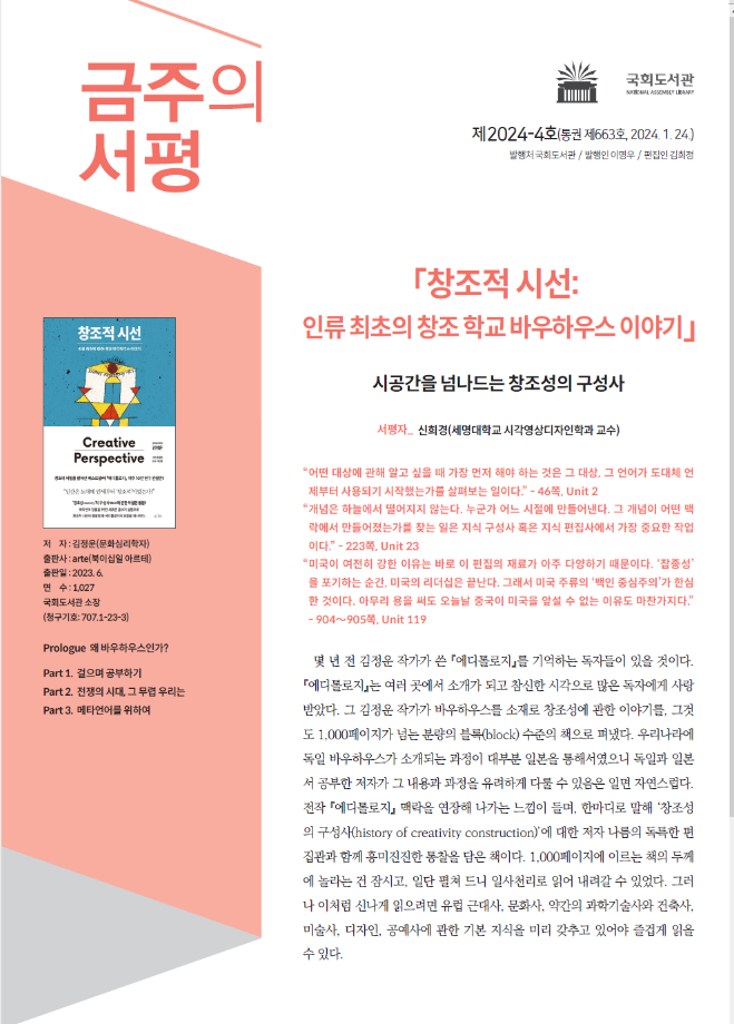 신희경 학과장님의 국회도서관 「창조적 시선」 에 대한 서평
