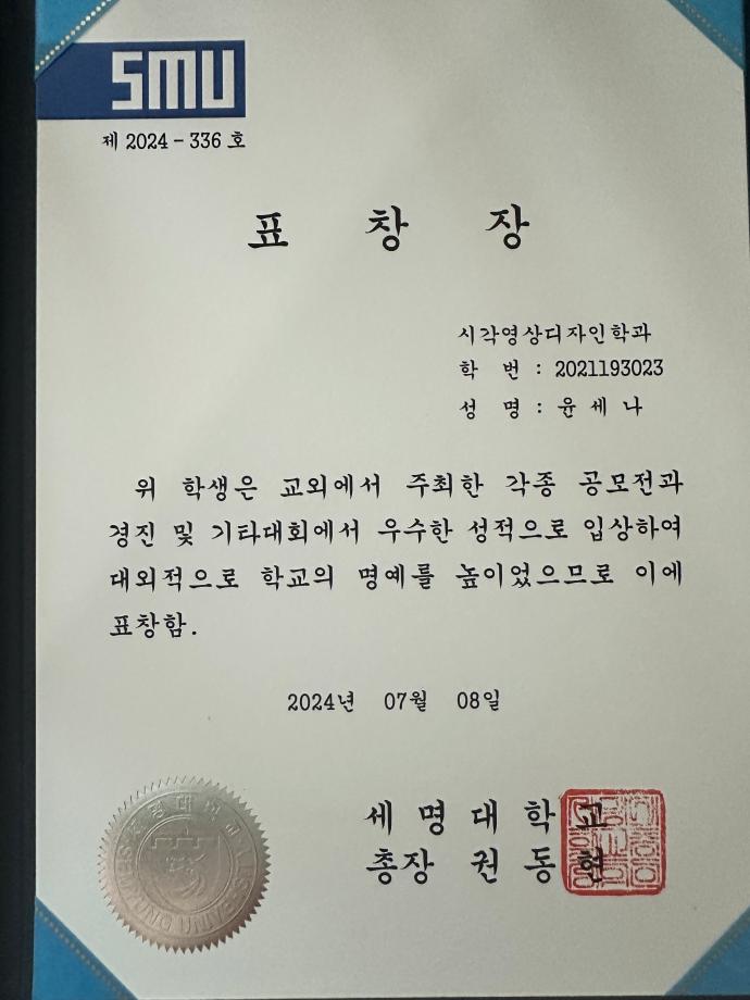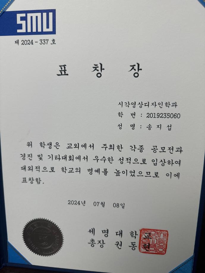 본문 시작 홈으로 학과자랑 학과소개 학과과정 시영소식 입학/취업 AI 학과자랑 SNS소통 홈페이지가이드 학과자랑 학과자랑 갤러리 공모전 동아리 졸업전시회 학과자랑 페이스북 트위터 프린트 2024학년도 1학기 총장표창 (시각영상디자인학과 3명 수상) 시각영상디자인학과 1759 2024-08-01 2024학년도 1학기 총장표창 (시각영상디자인학과 3명 수상) -학교의 명예를 빛낸 학생들에게 수여하는 총장 표창을 시각영상디자인학과에서 3명이 수상하였습니다~ (2023 국제사이버디자인트렌드공모전 대상/ 금상 수상 등) 목록 이전2024 여름 현장실습 학생 인터뷰 다음 외국인 근로자를 위한 숏폼 영상 공모전 - DO YOU KNOW 안전? 담당부서 : 시각영상디자인학과 담당자 : - 연락처 : 043-649-1726 최종수정일 : 2024-10-26 만족도조사 만족도 조사 이 페이지에서 제공하는 정보에 대하여 만족하시나요? 매우만족 만족 보통 불만족 매우불만족