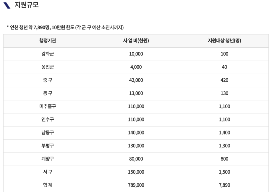 인천시의 만 18세~39세 청년들에게