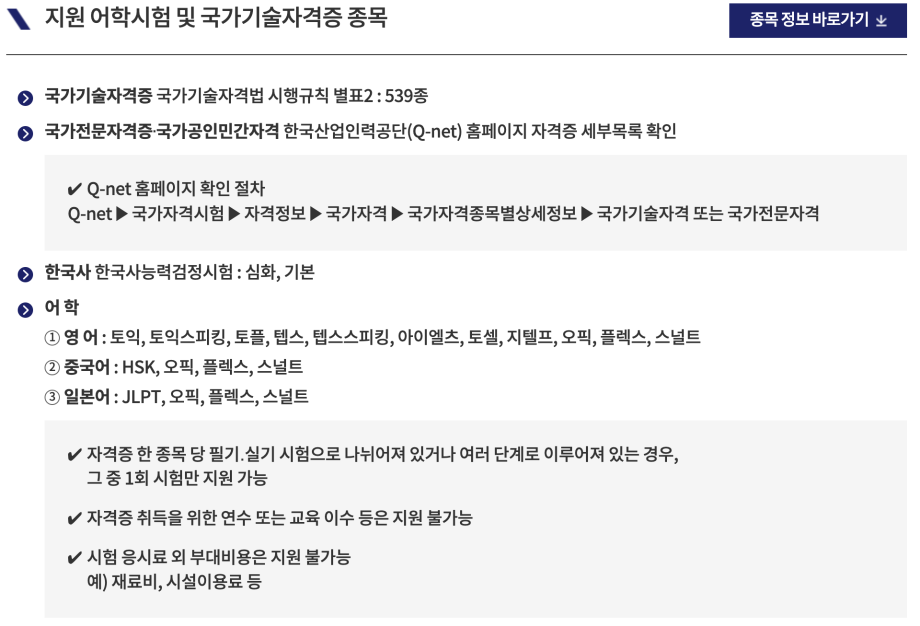 자격증 응시료 지원사업으로는
