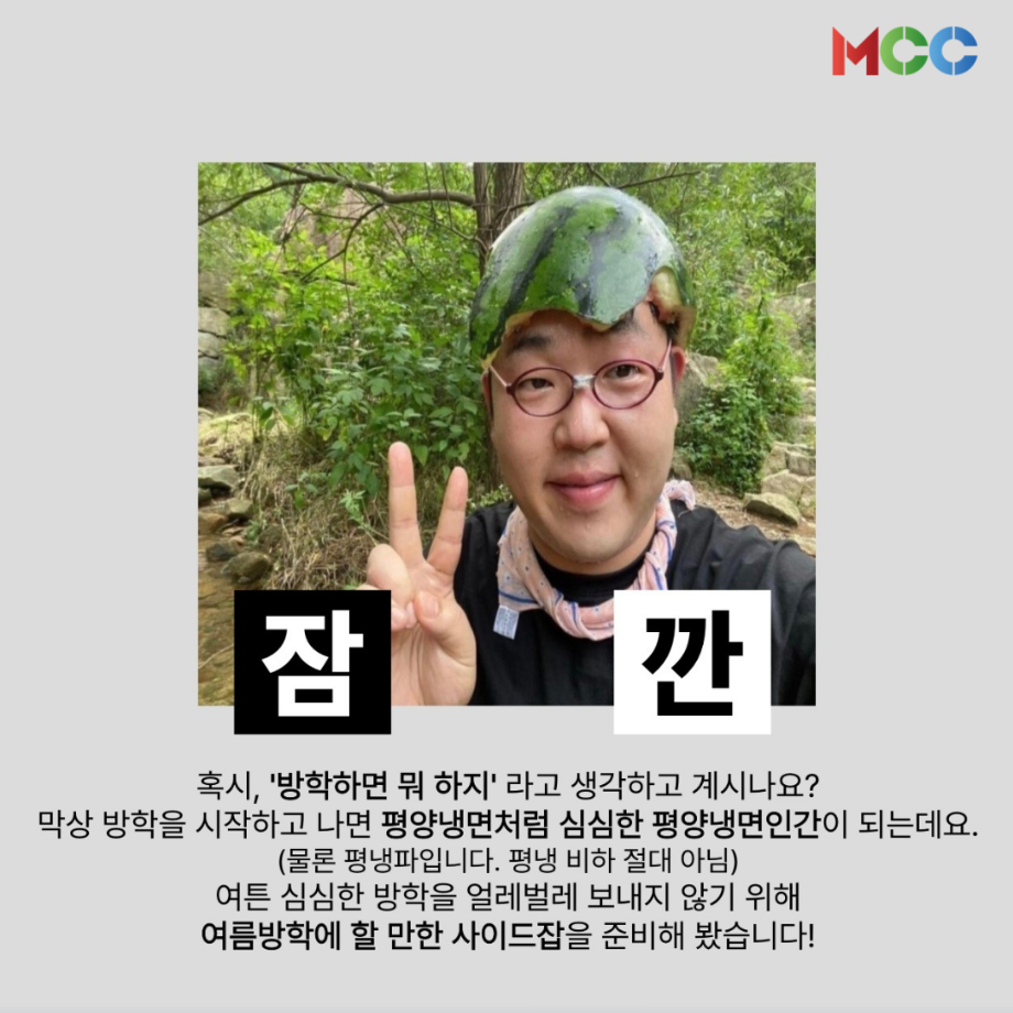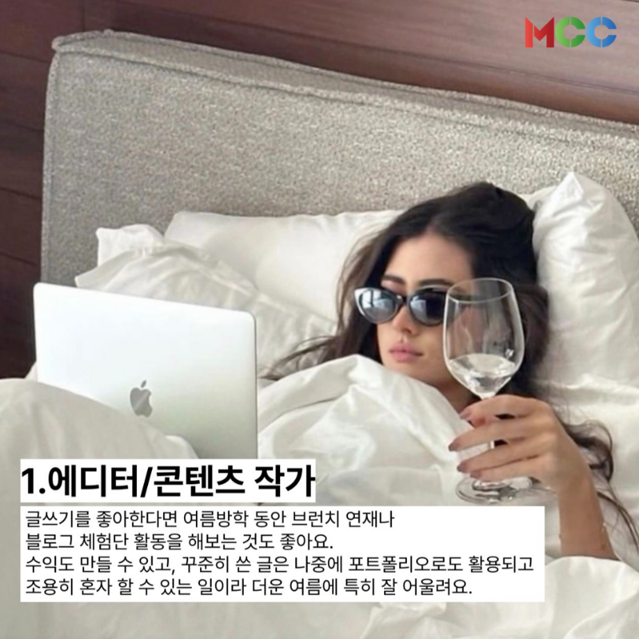 본문 시작 홈으로 MCC News 학과소개 교수소개 학과과정 MCC News MCC SNS 홈페이지가이드 미디어 정보통 학과 및 재학생 교수 및 졸업생 미디어 정보통 미디어 정보통 페이스북 트위터 프린트 ☀️“여름방학에 뭐 하지..?”☀️ 미디어콘텐츠창작학과 1263 2025-06-17 방학에 할 수 있는 사이드잡을 추천해드립니다!😎 1.에디터/콘텐츠 작가 2.썸네일•디자인 외주 3.영상 편집 & 자막 작업 4.온라인 서포터즈 & 대외활동 5.중고거래+스마트스토어 도전 자세한 내용은 @smu_mcc에서! 목록 이전2025 제천시 교육발전특구사업 다음 미콘창 학생들을 위한 자격증 추천 리스트⭐ 담당부서 : 미디어콘텐츠창작학과 담당자 : - 연락처 : 043-649-1741 최종수정일 : 2024-10-26 만족도조사 만족도 조사 이 페이지에서 제공하는 정보에 대하여 만족하시나요? 매우만족 만족 보통 불만족 매우불만족