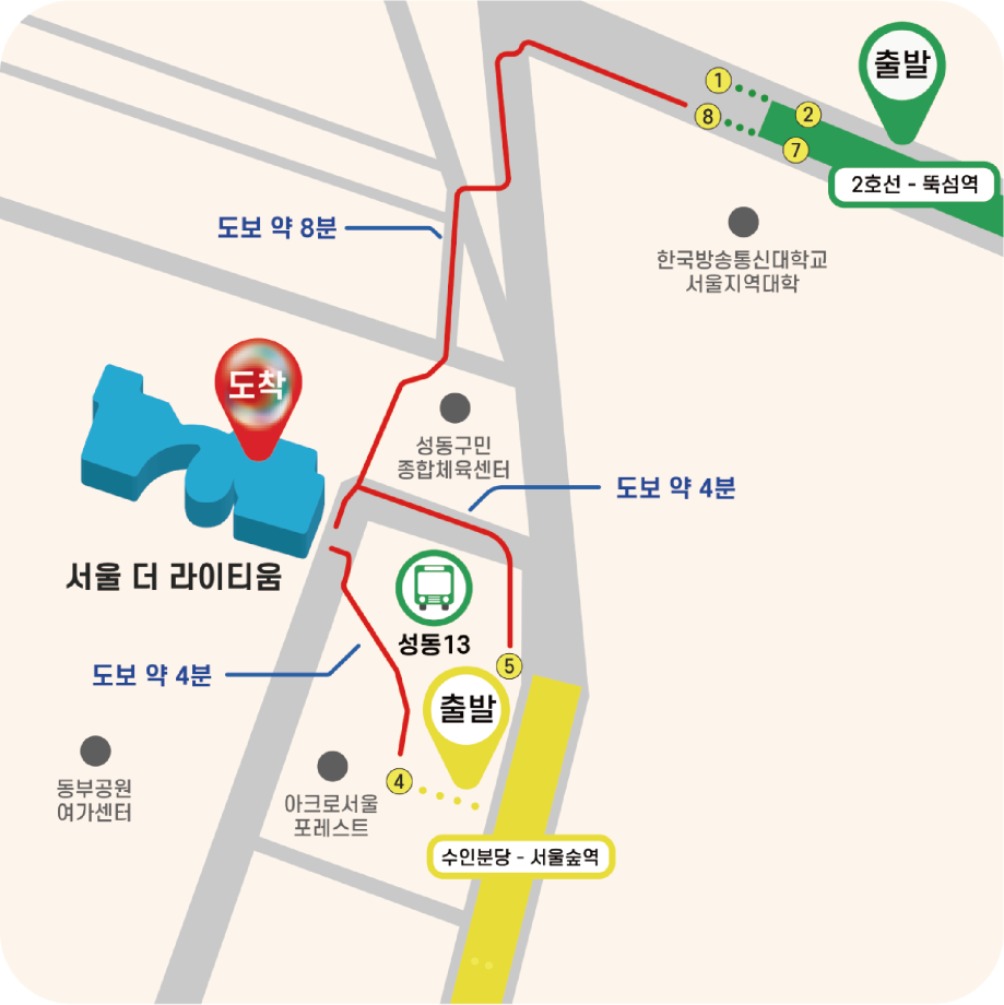 오시는길 - 뚝섬역 8번 출구 도보 약 8분
