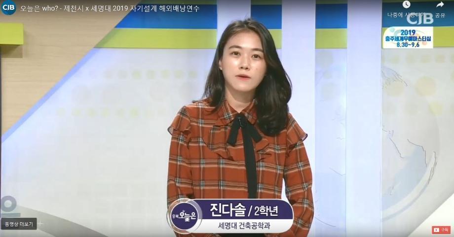 본문 시작 홈으로 커뮤니티 학과소개 교수소개 교육과정 학과 행사 및 활동 커뮤니티 홈페이지가이드 열린정보 학과일정 학과공지 채용정보 및 자료 열린정보 포토갤러리 먹거리, 즐길거리 포토갤러리 사진 사진 영상 사진 페이스북 트위터 프린트 사진 영상 CJB 청주방송 출연 건축학과 1306 2019-09-05 CJB 청주방송 오늘은 who ? (2019년 9월 5일) 제천시 X 세명대 2019 제천시 해외배낭연수 프로그램 세명대학교 건축공학과 2학년 진다솔 학생 출연 CJB 청주방송 다시보기 링크 https://www.cjb.co.kr/home/sub.php?menukey=322&mod=view&no=9019&scode=99999999 목록 다음 2019학년도 Archi-608 개소식 이전제2회 국제건축디자인워크숍(IADW) 및 태국 건축현장 체험 만족도조사 만족도 조사 이 페이지에서 제공하는 정보에 대하여 만족하시나요? 매우만족 만족 보통 불만족 매우불만족