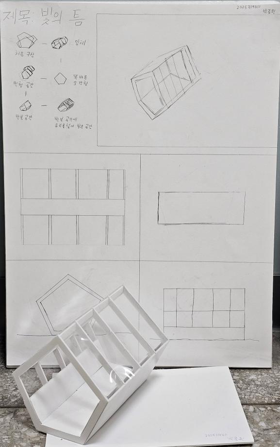 본문 시작 홈으로 커뮤니티 학과소개 교수소개 교육과정 학과 행사 및 활동 커뮤니티 홈페이지가이드 열린정보 학과일정 학과공지 채용정보 및 자료 열린정보 포토갤러리 먹거리, 즐길거리 포토갤러리 사진 사진 영상 사진 페이스북 트위터 프린트 사진 영상 1학년 중간 설계과제 건축학과 654 2025-10-30 1학년은 ‘건축공간구성’에서 스케치와 모형을 통해 공간을 탐구했습니다. 처음 도전한 판넬과 모델링이었지만, 각자의 아이디어와 독창성이 빛나는 작품들이 완성되었습니다 ✨ 건축가로 성장해갈 이들의 다음 걸음이 더욱 기대됩니다! 👣😊 목록 이전2학년 중간 설계과제 다음 세명대학교 홍보 포스터 만족도조사 만족도 조사 이 페이지에서 제공하는 정보에 대하여 만족하시나요? 매우만족 만족 보통 불만족 매우불만족