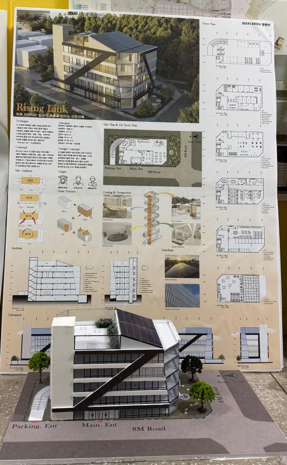 본문 시작 홈으로 커뮤니티 학과소개 교수소개 교육과정 학과 행사 및 활동 커뮤니티 홈페이지가이드 열린정보 학과일정 학과공지 채용정보 및 자료 열린정보 포토갤러리 먹거리, 즐길거리 포토갤러리 사진 사진 영상 사진 페이스북 트위터 프린트 사진 영상 2학년 기말 설계과제 건축학과 446 2025-12-23 2학년 설계 스튜디오 주제는 🏢 근린생활시설. 일상과 도시 사이에서 사람들의 활동을 담아내는 공간을 제안했습니다. 목록 이전3학년 기말 설계과제 다음 1학년 기말 설계과제 만족도조사 만족도 조사 이 페이지에서 제공하는 정보에 대하여 만족하시나요? 매우만족 만족 보통 불만족 매우불만족