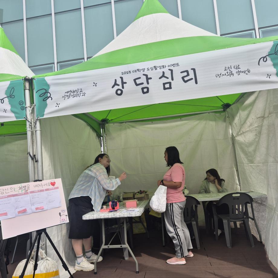 본문 시작 홈으로 학과 커뮤니티 학부소개 교수소개 교육목표 입학안내 학과 커뮤니티 대학원 커뮤니티 홈페이지가이드 학과 갤러리 학과소식 학사일정 학과 갤러리 학과 갤러리 페이스북 트위터 프린트 2025 대학생 도심활성화 이벤트 상담심리학과 522 2025-10-14 안녕하세요 세명대학교 상담심리학과입니다! 9월 30일에 진행된 2025 대학생 도심활성화 행사에서 상담심리학과 학생들이 '마음약국'이라는 부스로 정서회복 캠페인을 진행했습니다. ( ·•︡_•︠)ʕ𐭩 다양한 사람들의 고민을 듣고 공감과 위로를 전하는 의미 있는 시간이었습니다. 앞으로 이런 기회가 더 많아지길 바라며, 큰 고민 없이 행복한 날들이 이어지길 바랍니다 :) 목록 이전GRIT 동아리 봉사활동 다음 2025학년도 Step Up! SMU창업캠프 및 경진대회 만족도조사 만족도 조사 이 페이지에서 제공하는 정보에 대하여 만족하시나요? 매우만족 만족 보통 불만족 매우불만족